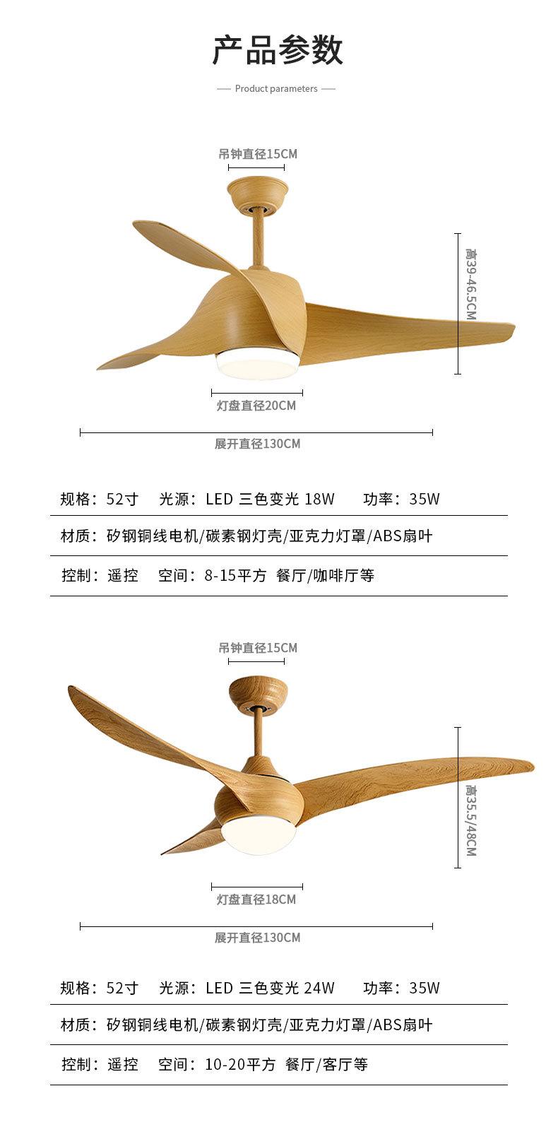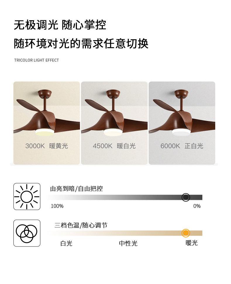 All white ct87a 52inch white abs fan blades 18w three-color light, Full walnut color ct87a 52inch walnut color...