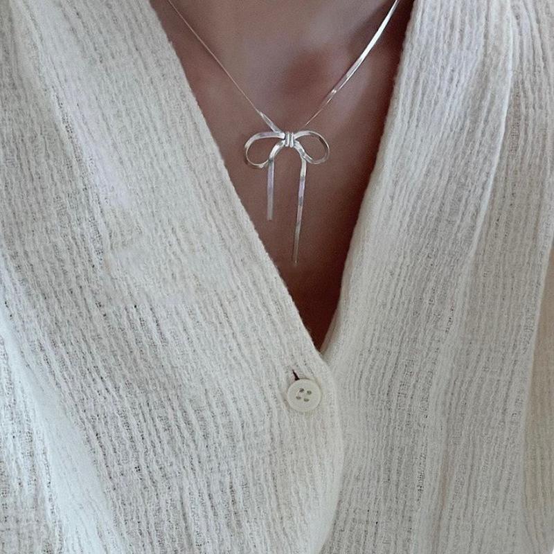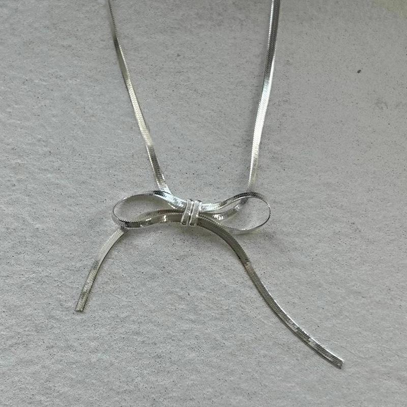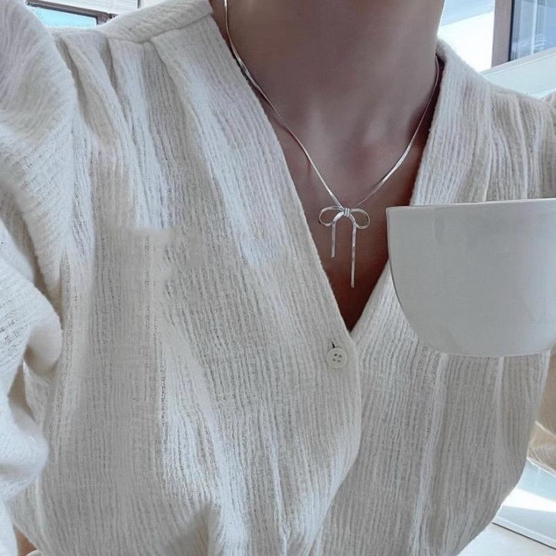 Collar de cadena con diseño de nicho de estilo coreano con forma de serpiente y lazo para mujer, estilo frío, elegante, combinable con todo, cadena de clavícula de alta gama.