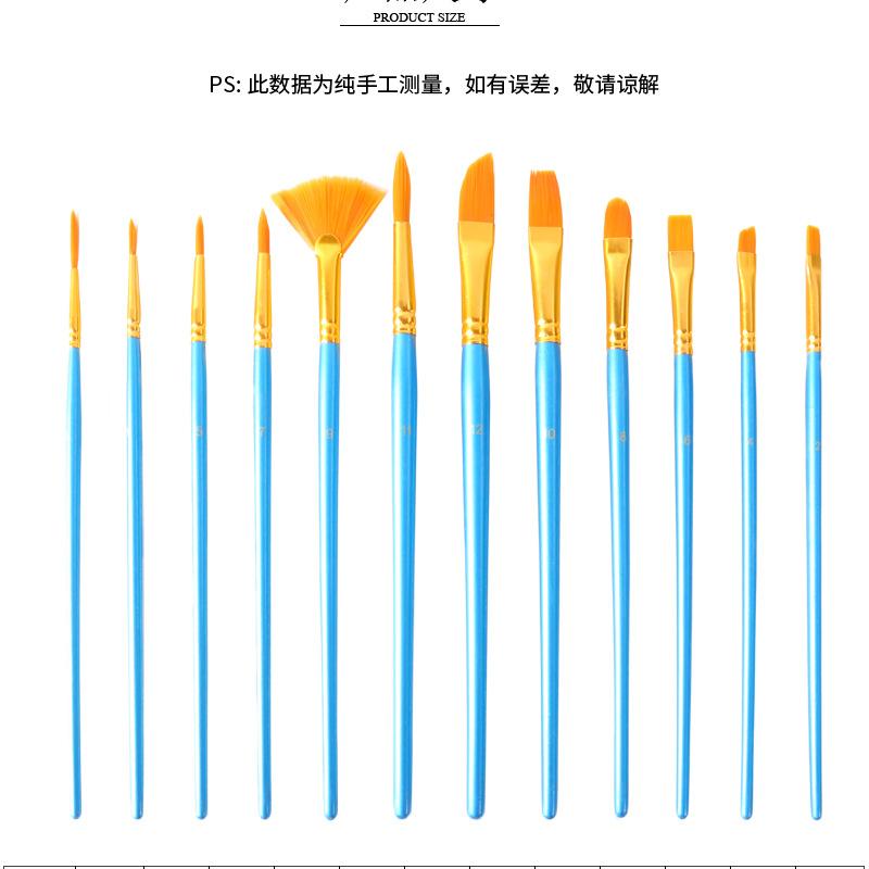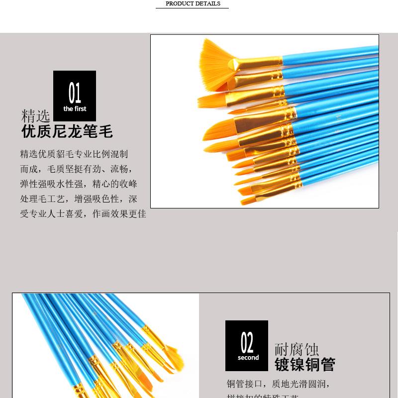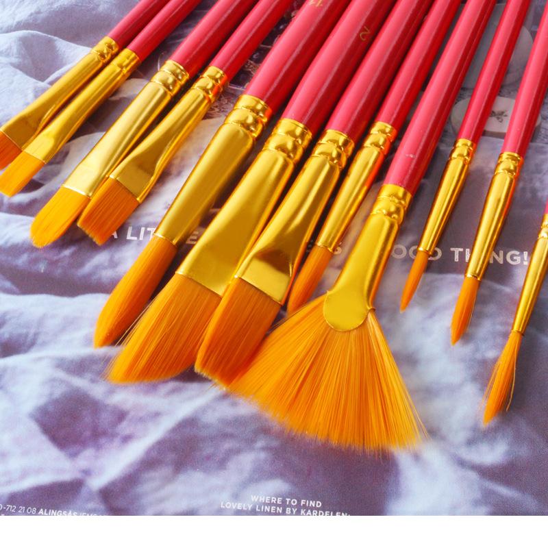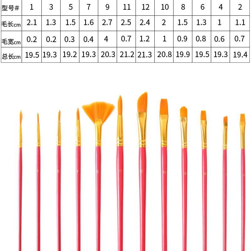 Set de Pinceles de Pintura al Óleo Pintados a Mano Transfronterizos 12 Pinceles de Pintura al Óleo de Pelo de Nailon Palo de Madera Pinceles para Pigmento Gouache Ventas Directas de Fábrica