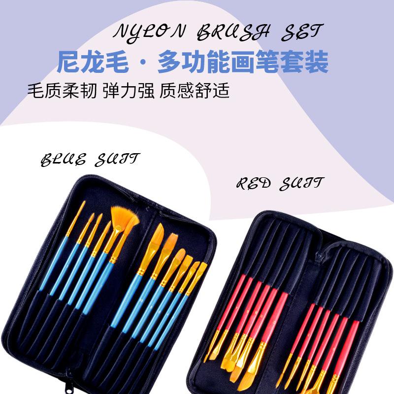 (Blue) 12 oil brush kit, (Red) 12 oil brush kit