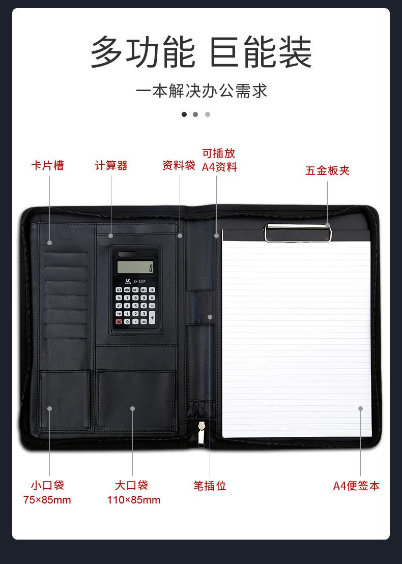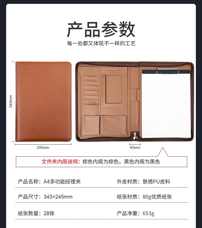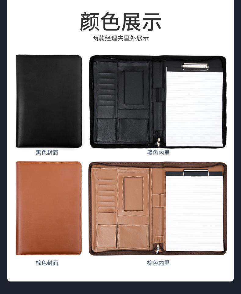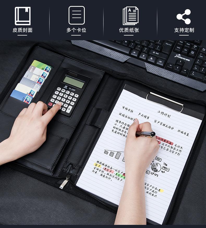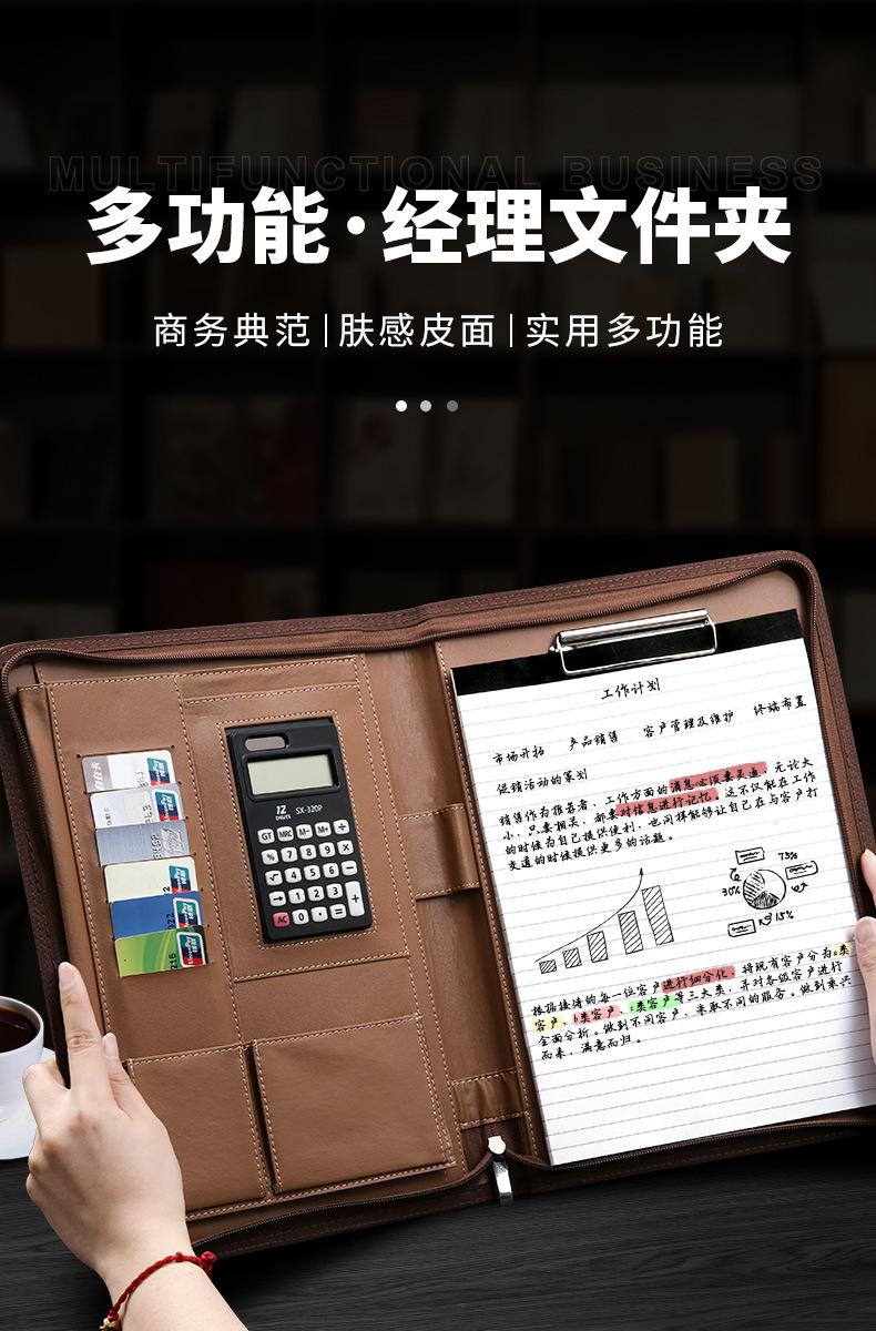 Carpeta A4 multifuncional con cremallera, carpeta organizadora, bloc de notas, cuero, contrato de venta, almacenamiento de datos, personalización