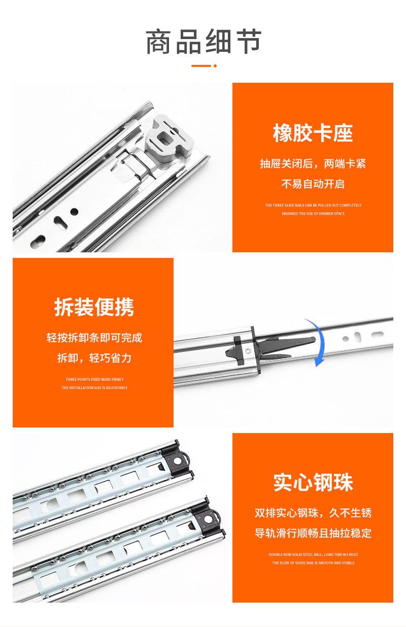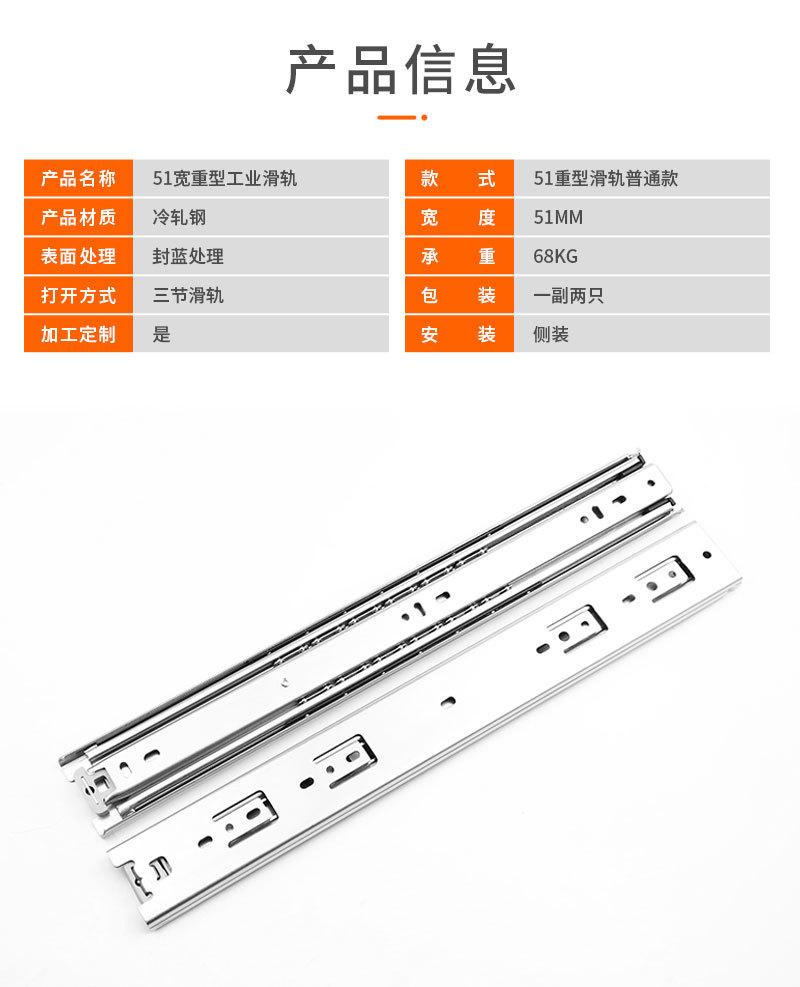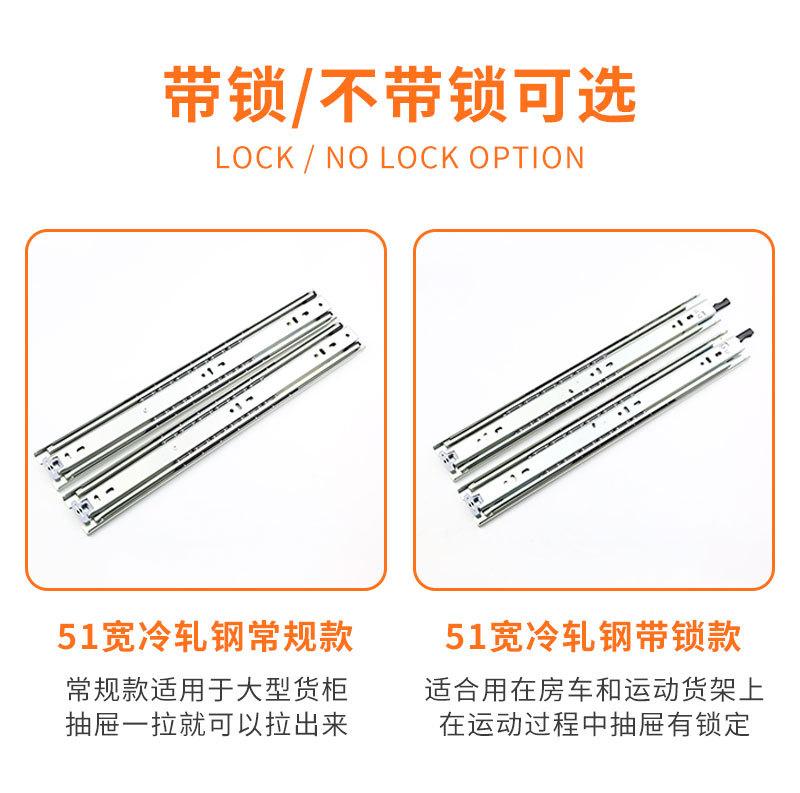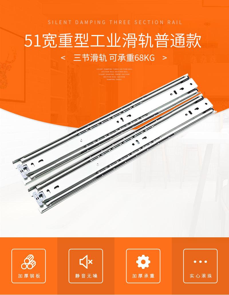 Riel deslizante industrial resistente de 51 pulgadas de ancho, con cojinetes autoblocantes de tres secciones, para gabinete, armario de RV, riel de cajón engrosado
