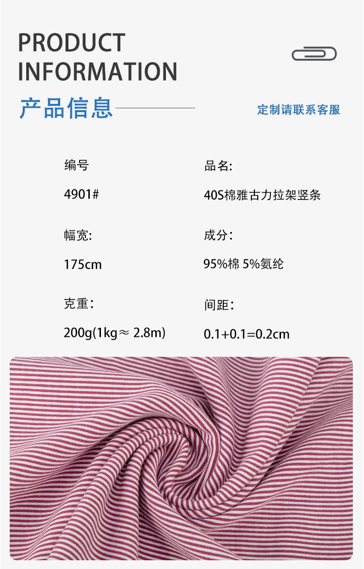 Tejido de punto a rayas de los años 21, tejido de algodón peinado de hilado compacto, camiseta, ropa para hombre y mujer, tejido de punto de algodón de ligamento tafetán de doble hilo