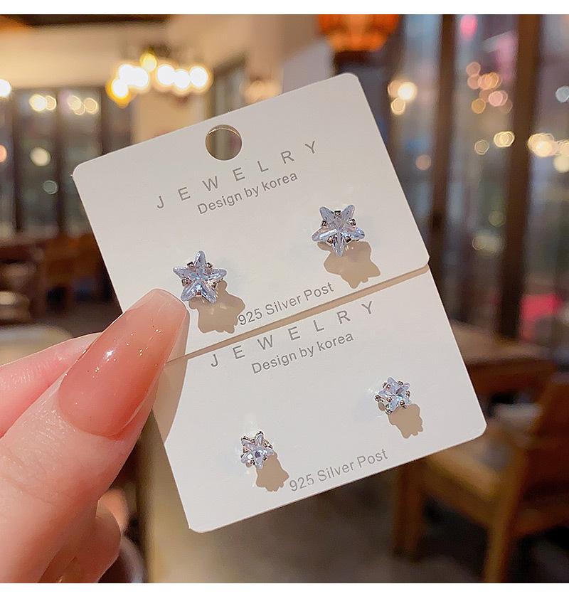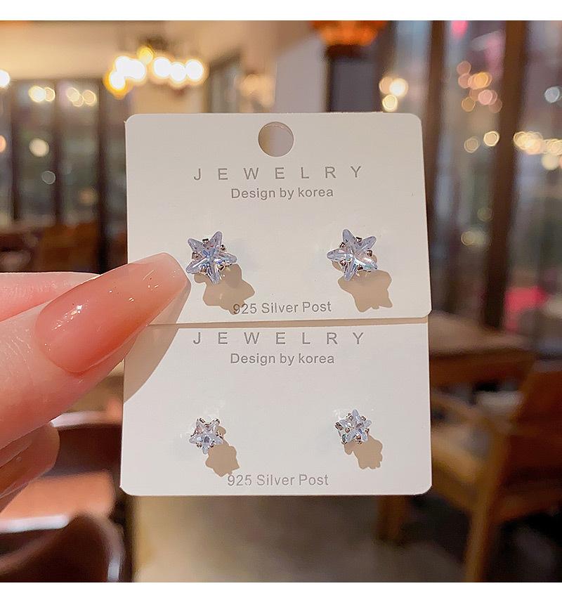 Pendientes de estrella de circonita con aguja de plata S925, exquisitos pendientes de estrella de cinco puntas de alta gama, tendencia femenina, pendientes de celebridad de red