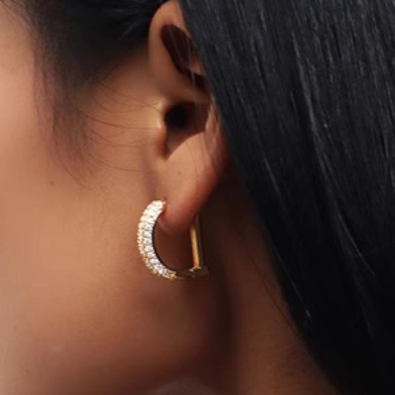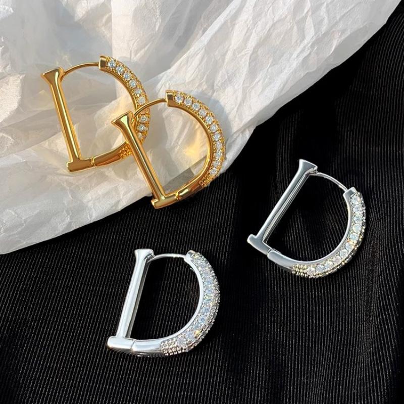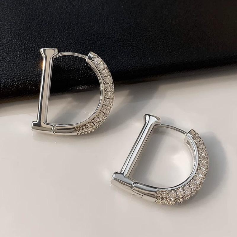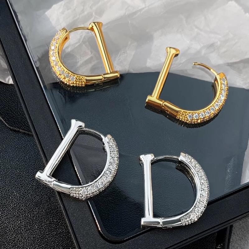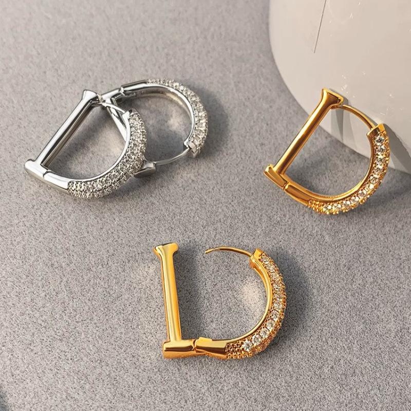 Pendientes de diamantes con letras de diseño de nicho europeo y americano, pendientes dorados de alta calidad, pendientes femeninos, pendientes de temperamento de alta calidad, moda