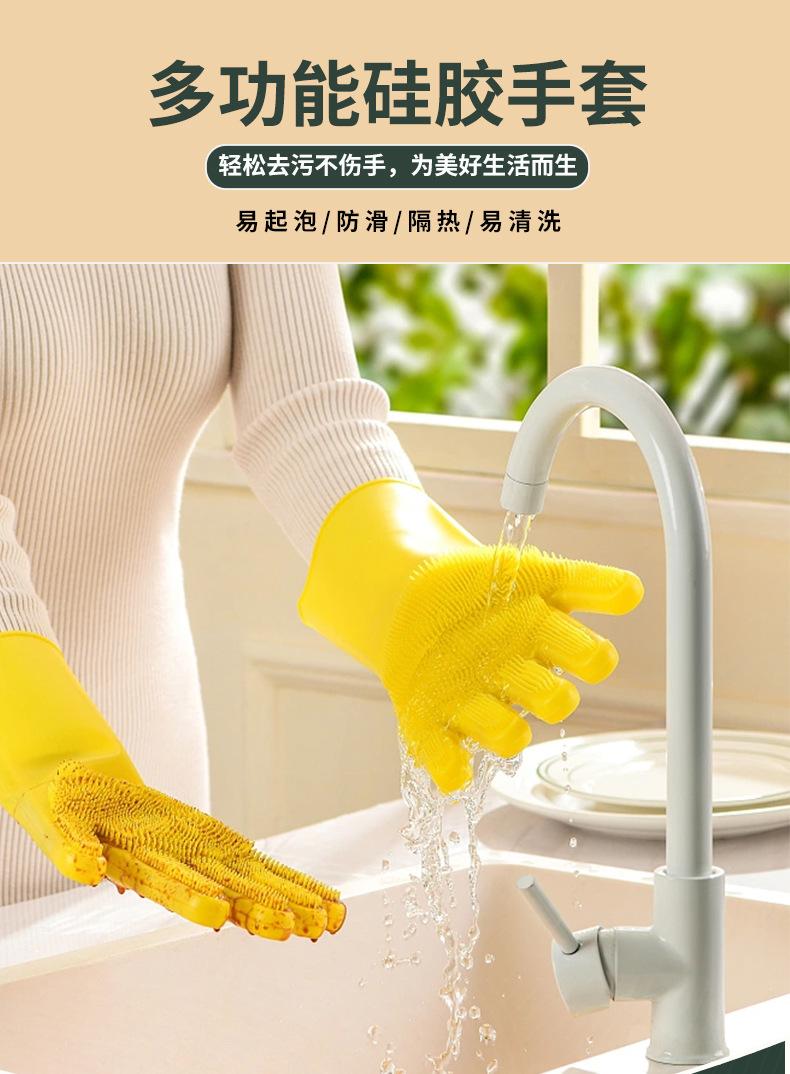 Guantes de silicona para lavar platos, guantes para tareas domésticas, finos, antideslizantes, anti-calor, cepillo mágico para limpieza de cocina, protección laboral
