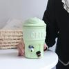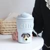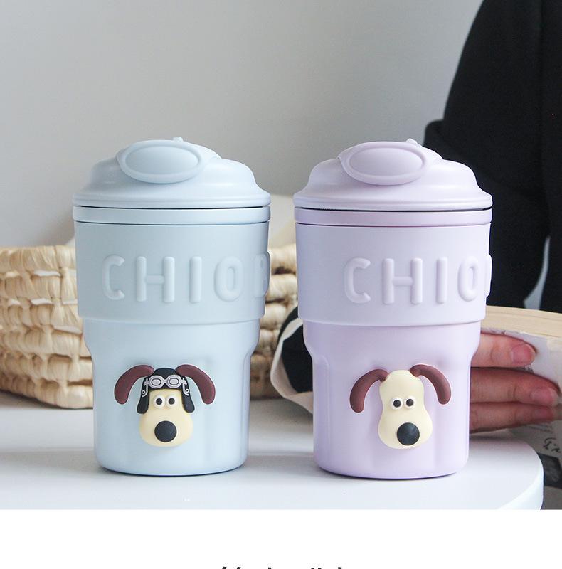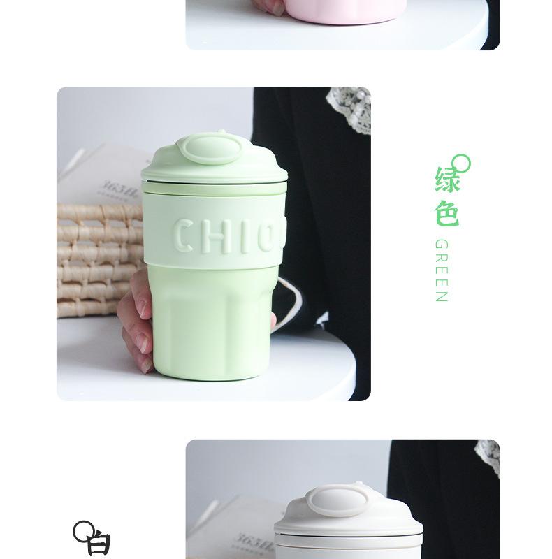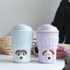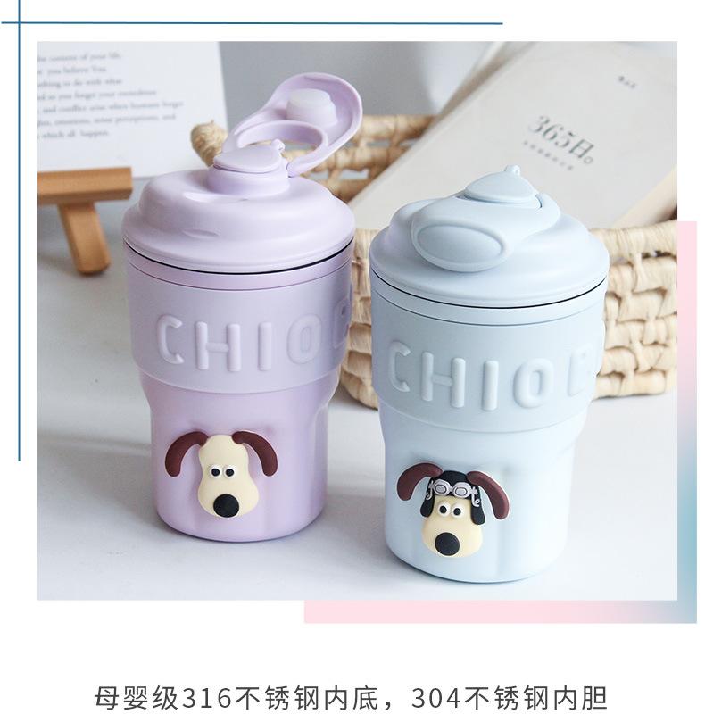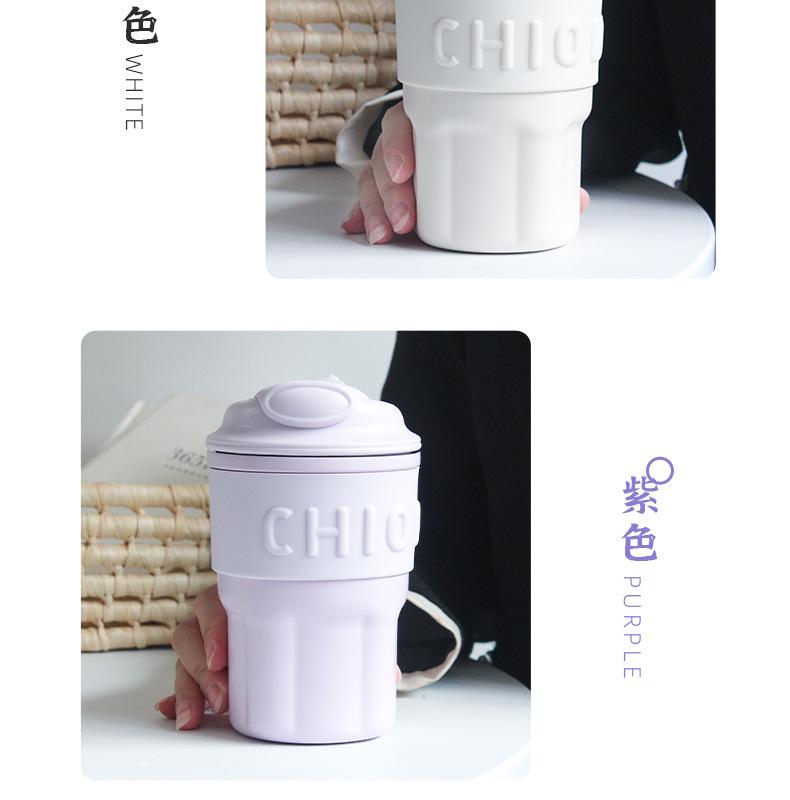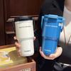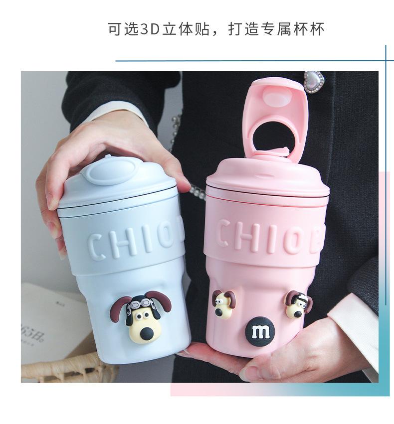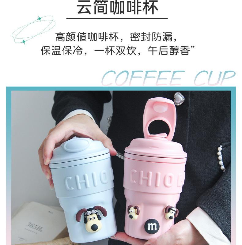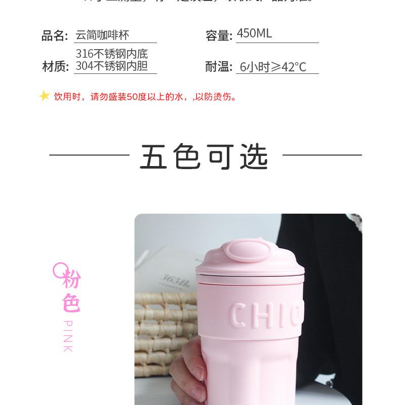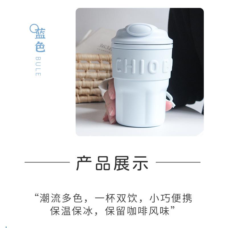Taza de café al vacío de acero inoxidable para dos bebidas, para niñas, con pajita, de aspecto alto, portátil, sencilla, para agua fría, taza portátil