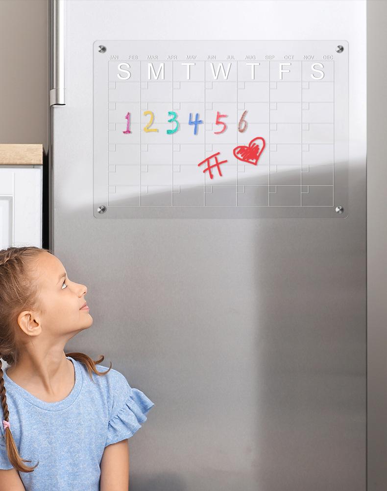 Pizarra Acrílica Magnética de Borrado en Seco Pizarra Magnética Transparente de Calendario Imán para Refrigerador Pizarra de Notas para Mensajes en Casa Pizarra de Exhibición Imán