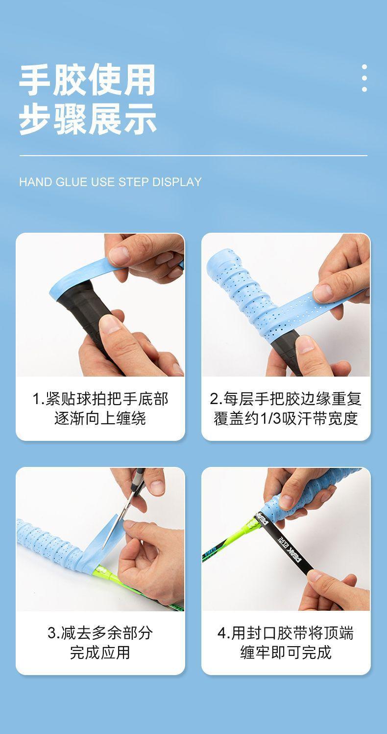 Envoltura de mango de raqueta de bádminton personalizada con pegamento manual, envoltura de mango de raqueta de tenis con agarre elástico y absorbente de sudor extendido con EVA