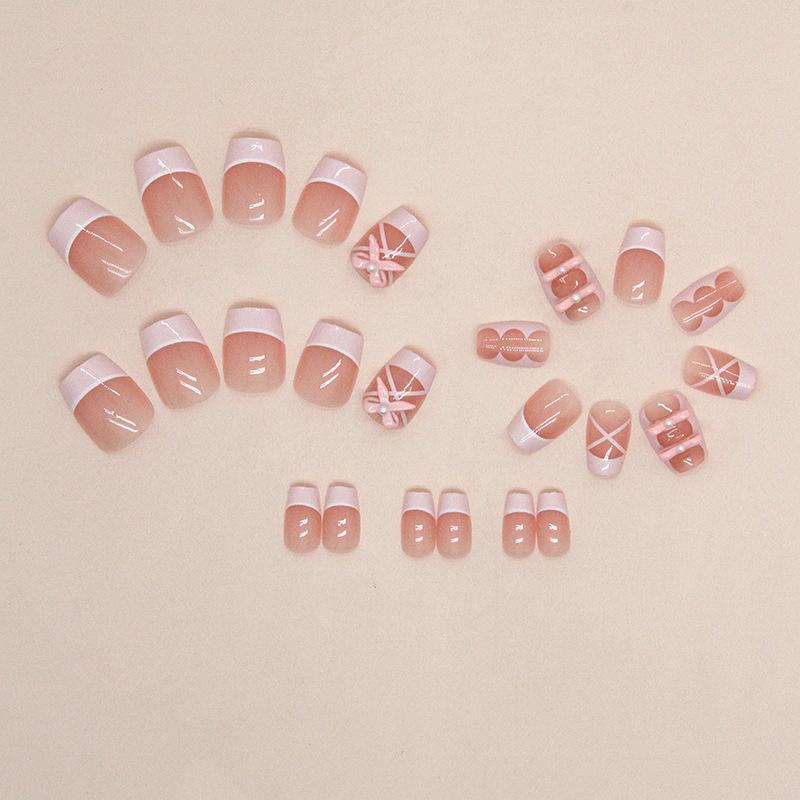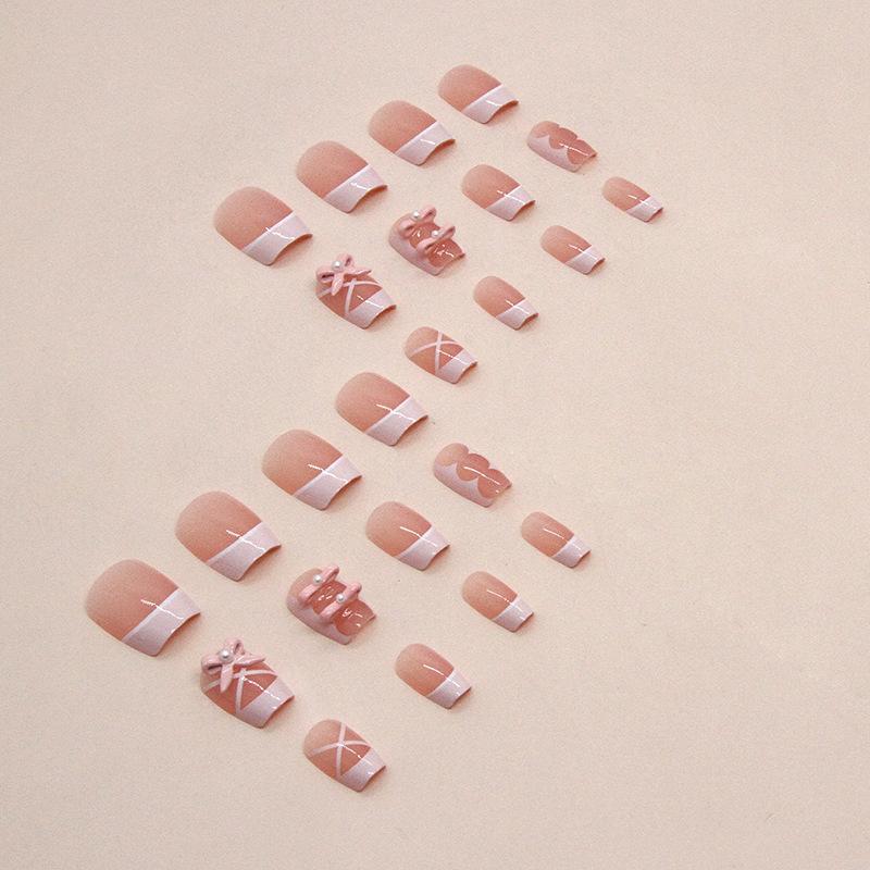 Niña rosa niña dulce uña francesa lindo diamante lazo tridimensional uña postiza producto terminado usar uña 24 piezas