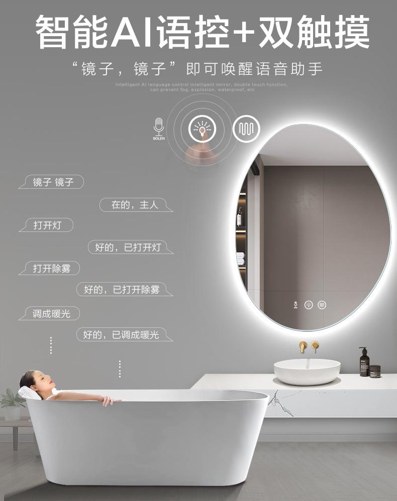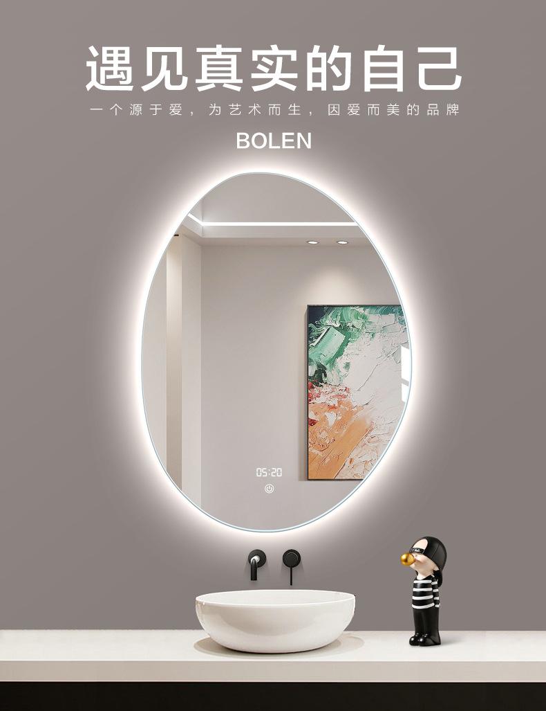 Vanidad de Baño Ovalada de Forma Especial Bolen Montada en Pared con Luz Espejo de Baño LED para Maquillaje Espejo de Baño Inteligente