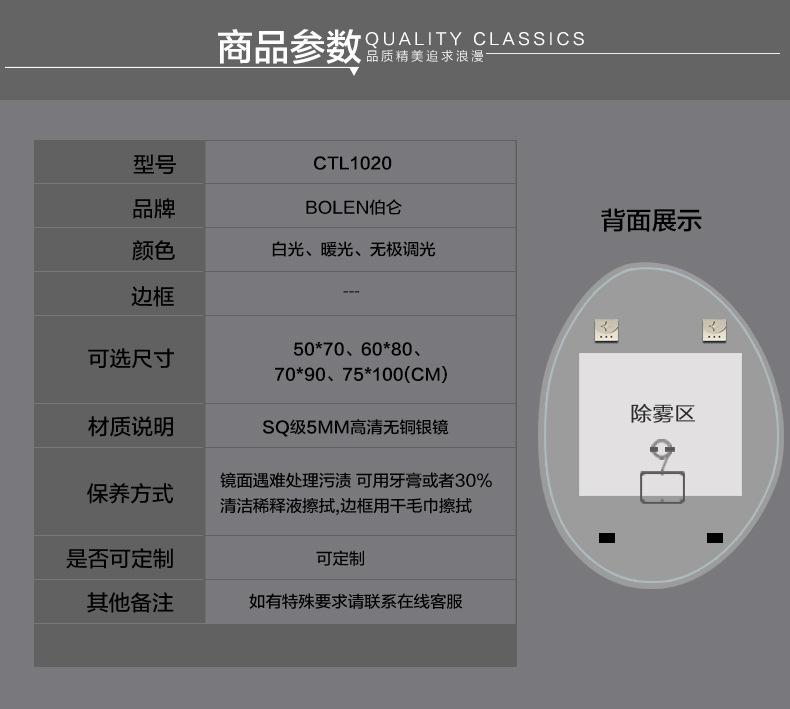 (Upgrade lampshade) double touch + time temperature + stepless dimming [Defog]] 600*800mm