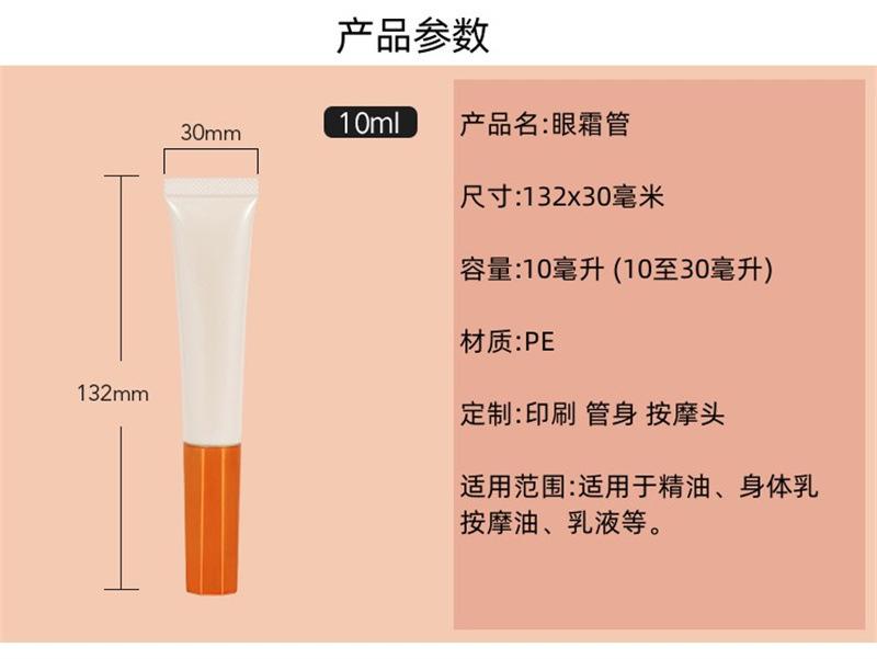 Material de embalaje de manguera cosmética de maquillaje de doble capa, 10 ml, manguera de masaje para ojos, cabezal de cepillo de limpieza, manguera de PE, embalaje
