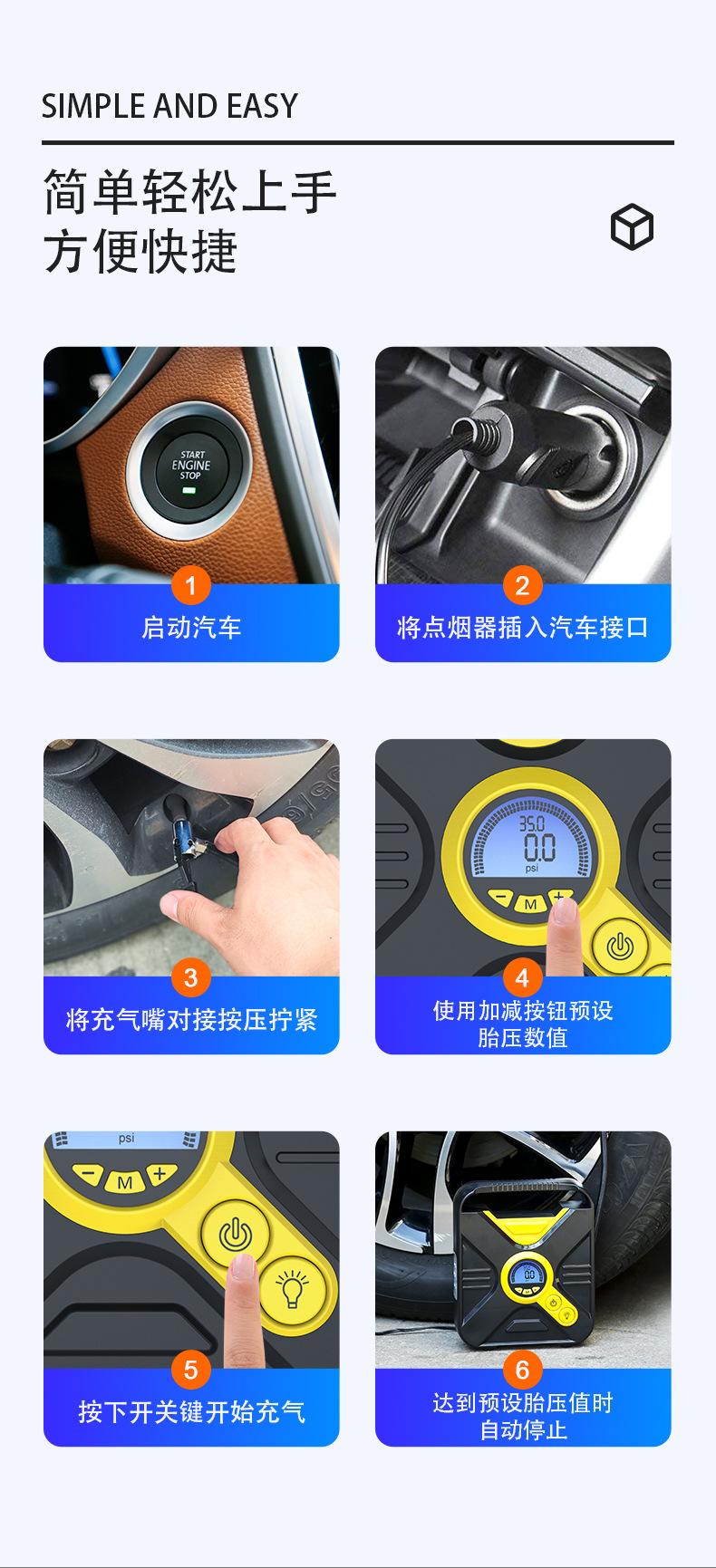 Bomba de aire inteligente multifuncional para coche, inflador rápido de alta potencia, compacta, portátil, con pantalla digital