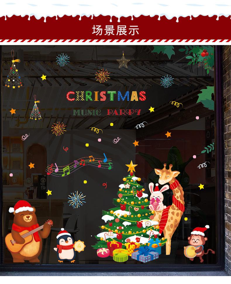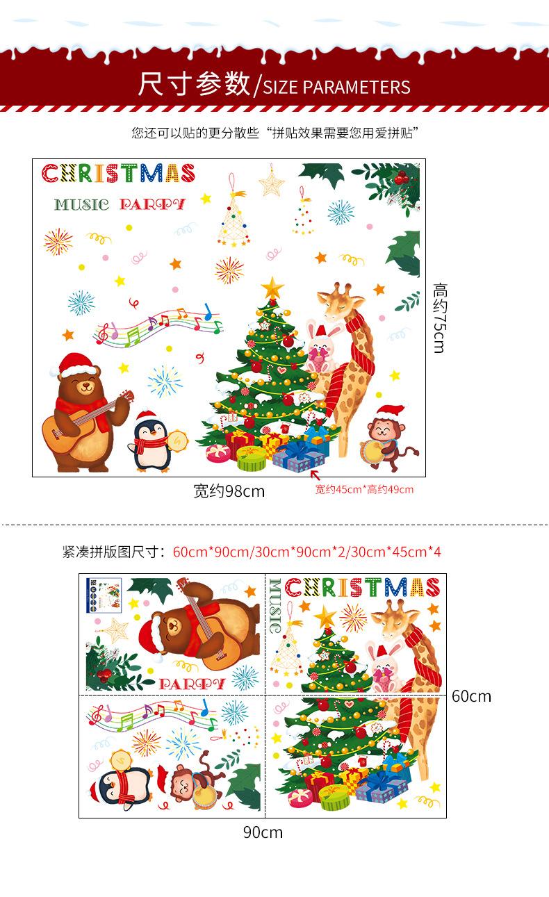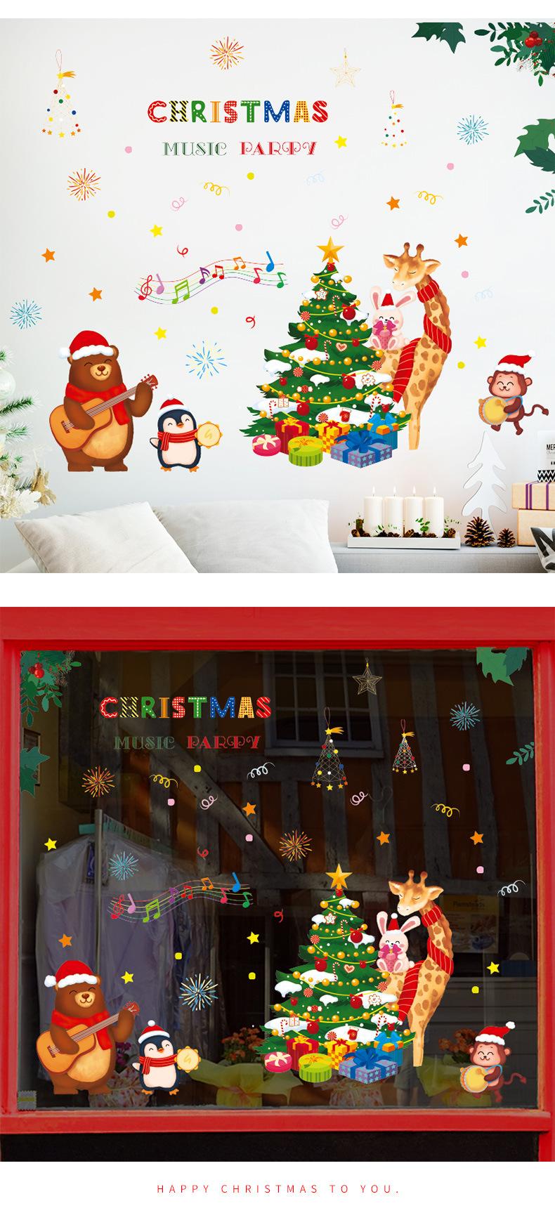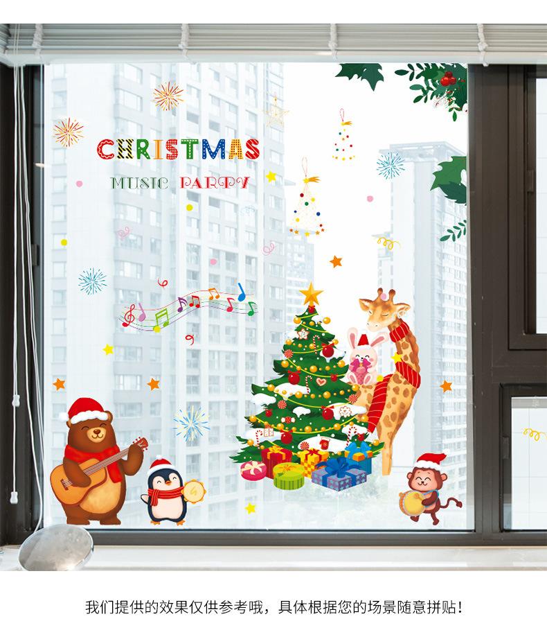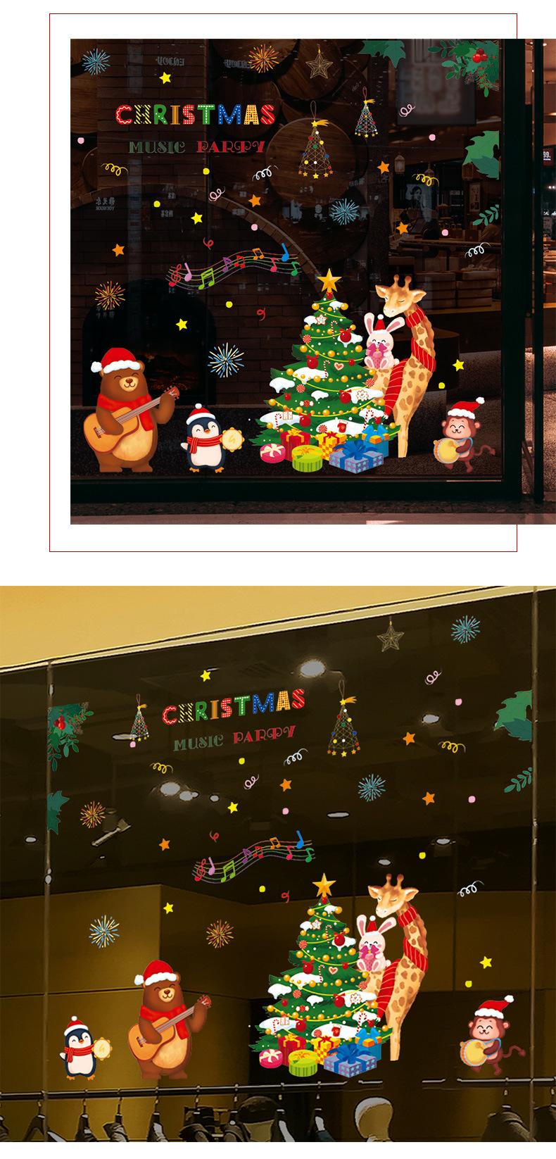 HT94033 Adhesivo decorativo para pared con diseño navideño de Papá Noel, muñeco de nieve, ciervo y ventana de cristal
