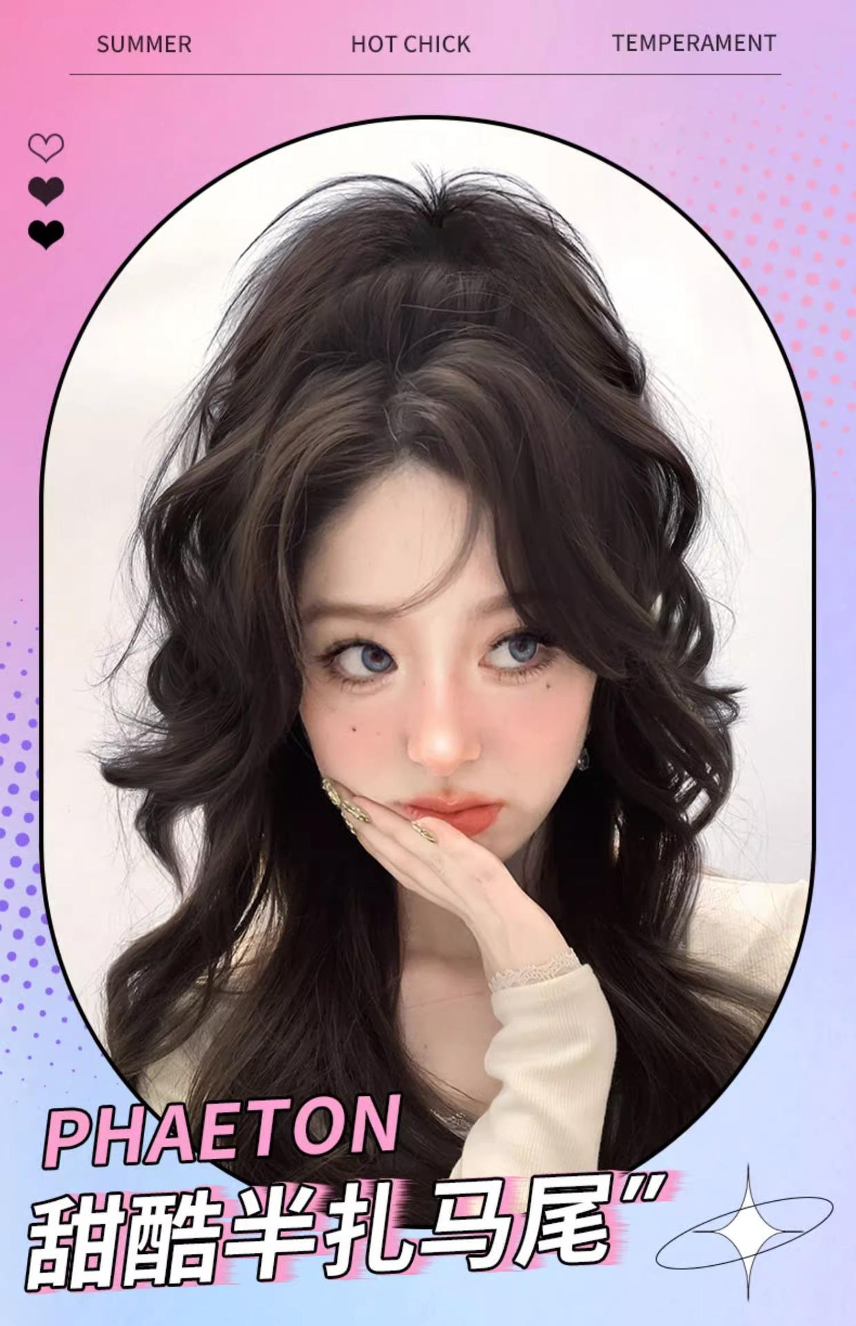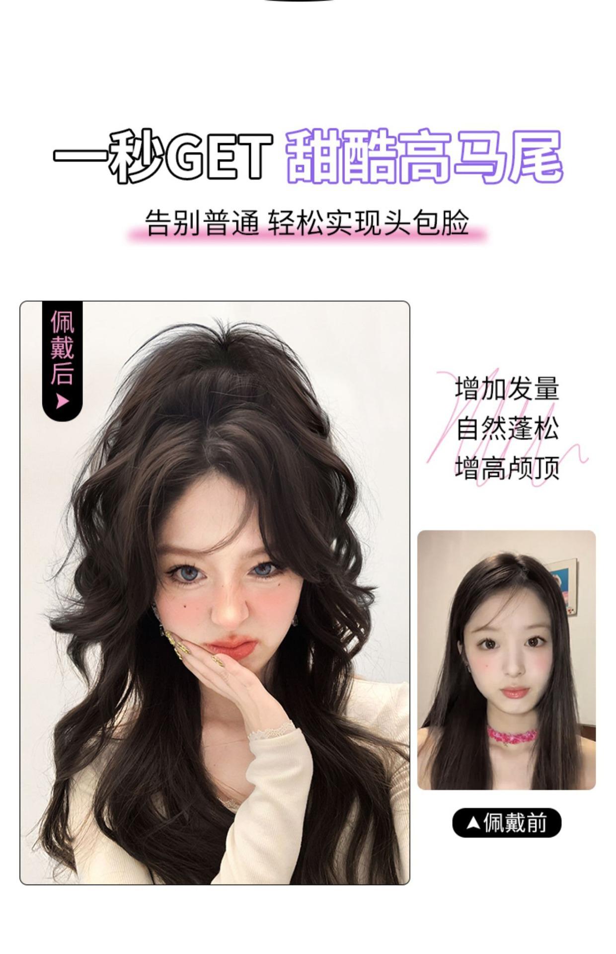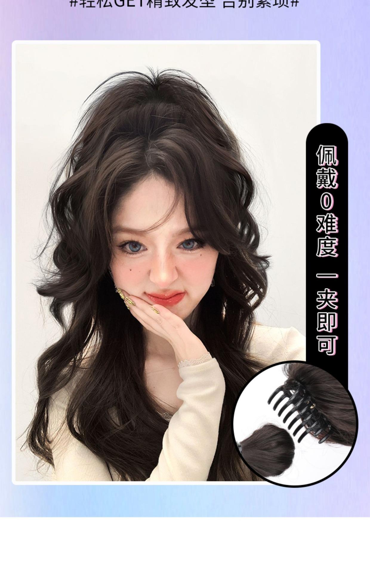 Peluca para mujer de pelo largo de simulación para niña trenza de coleta alta ligera nido de pollo cascada semirrecogido coleta alta pelo rizado