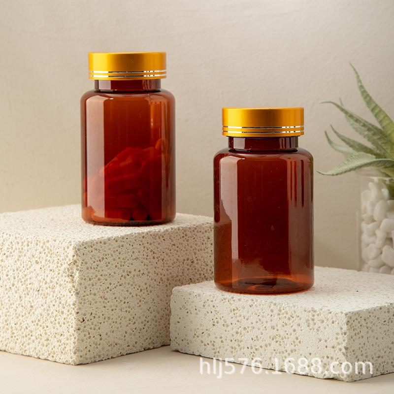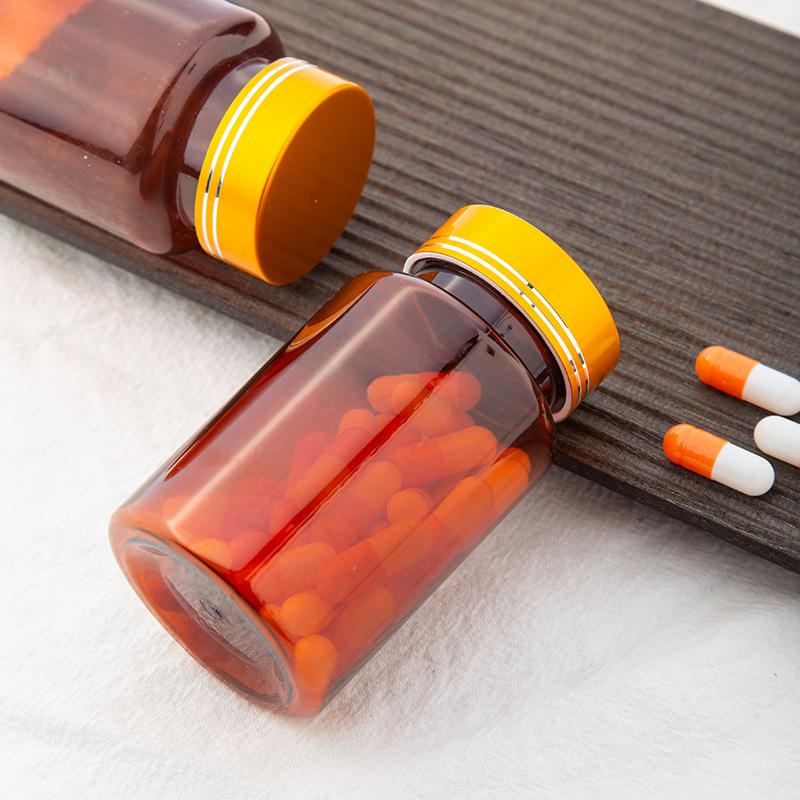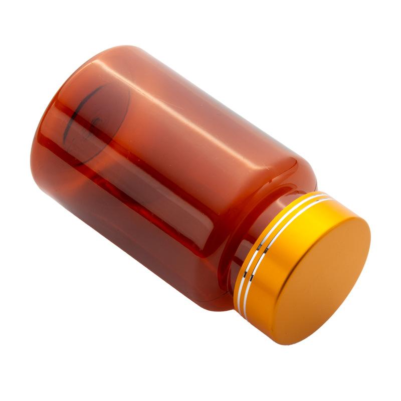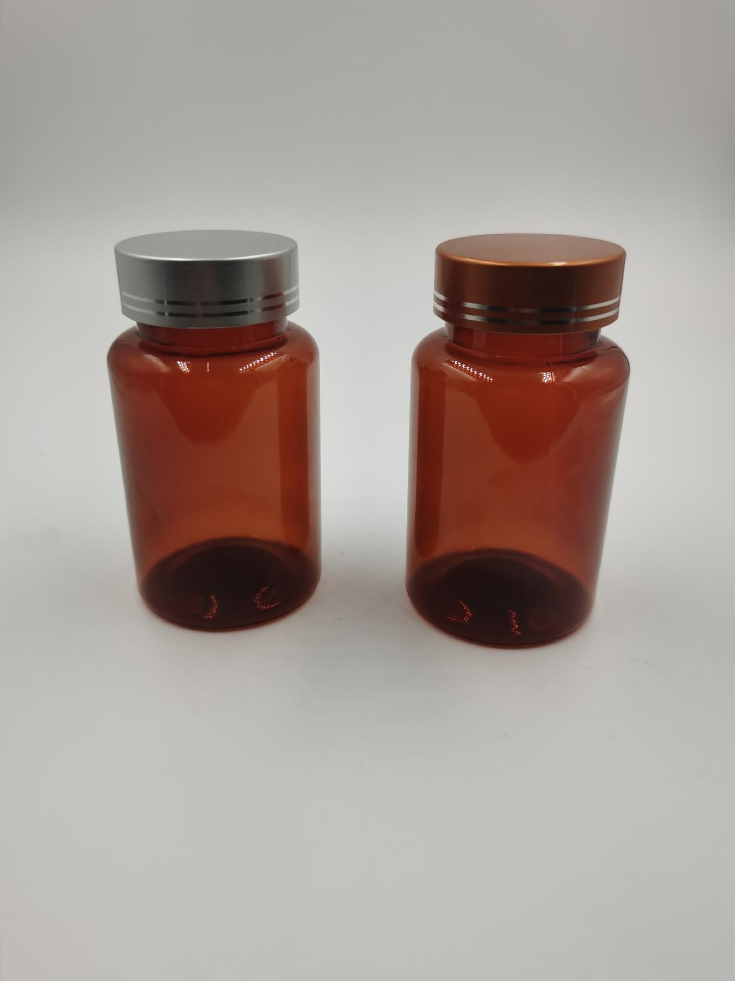 En Chaangong, en stock, PET120ml, tapa de metal, cápsula, botella de plástico, botella para el cuidado de la salud, botella de plástico, botella slub, venta al por mayor de alta gama