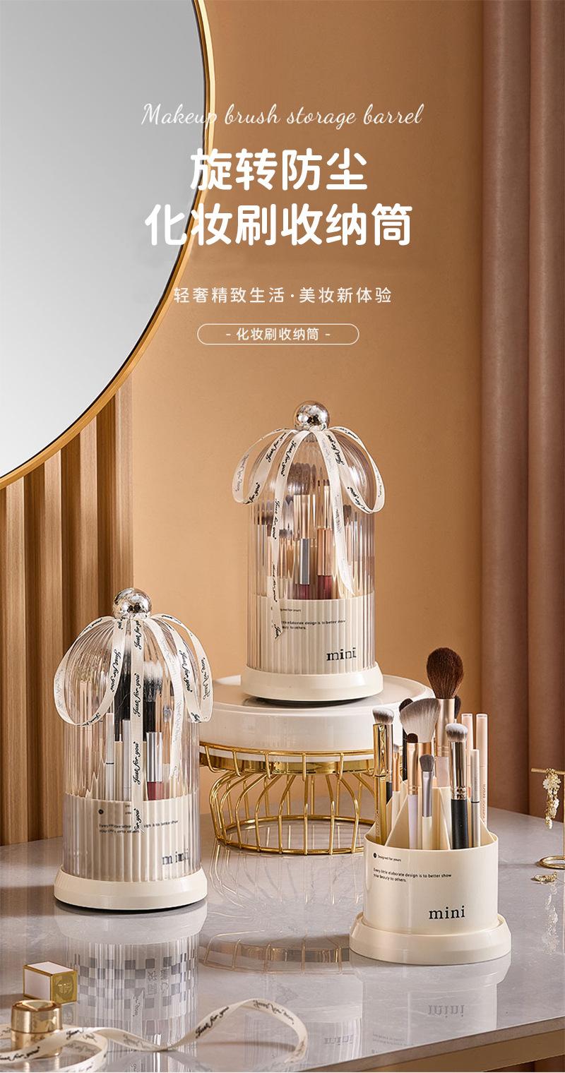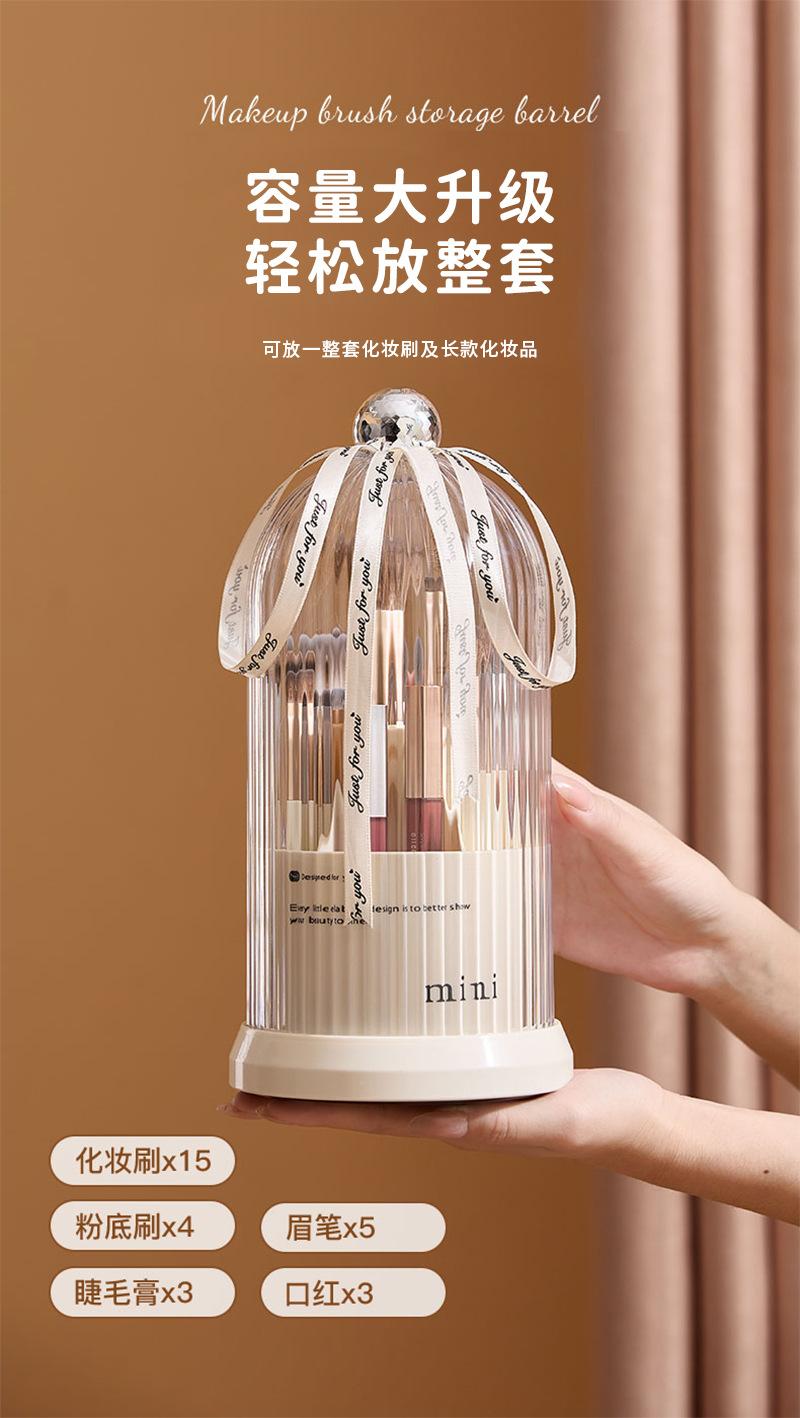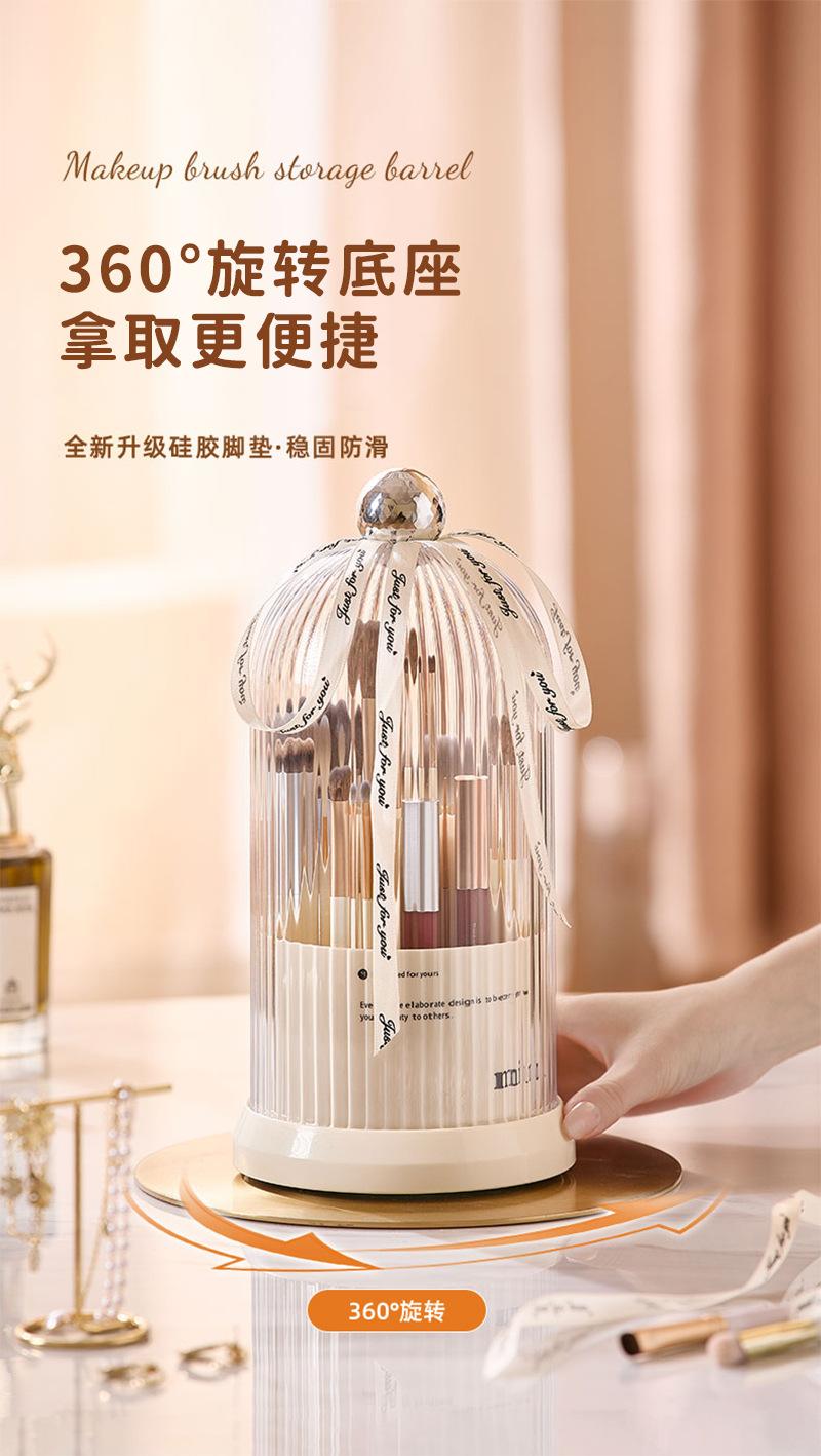 Cubo de almacenamiento para brochas de maquillaje, tubo de almacenamiento giratorio, tocador cosmético, estante para labiales y sombras de ojos, caja de almacenamiento de escritorio