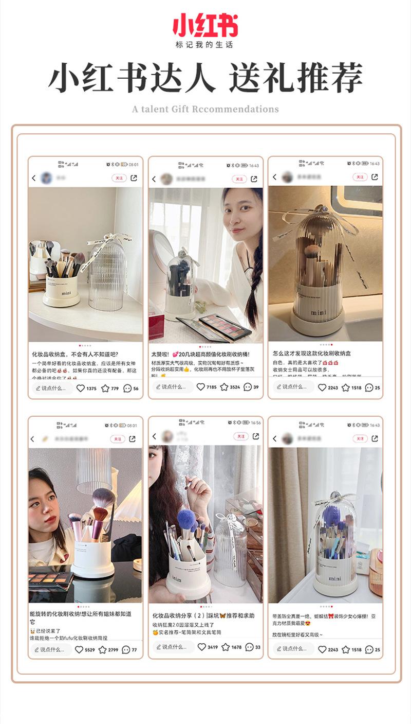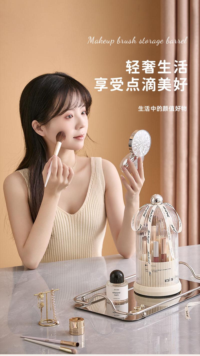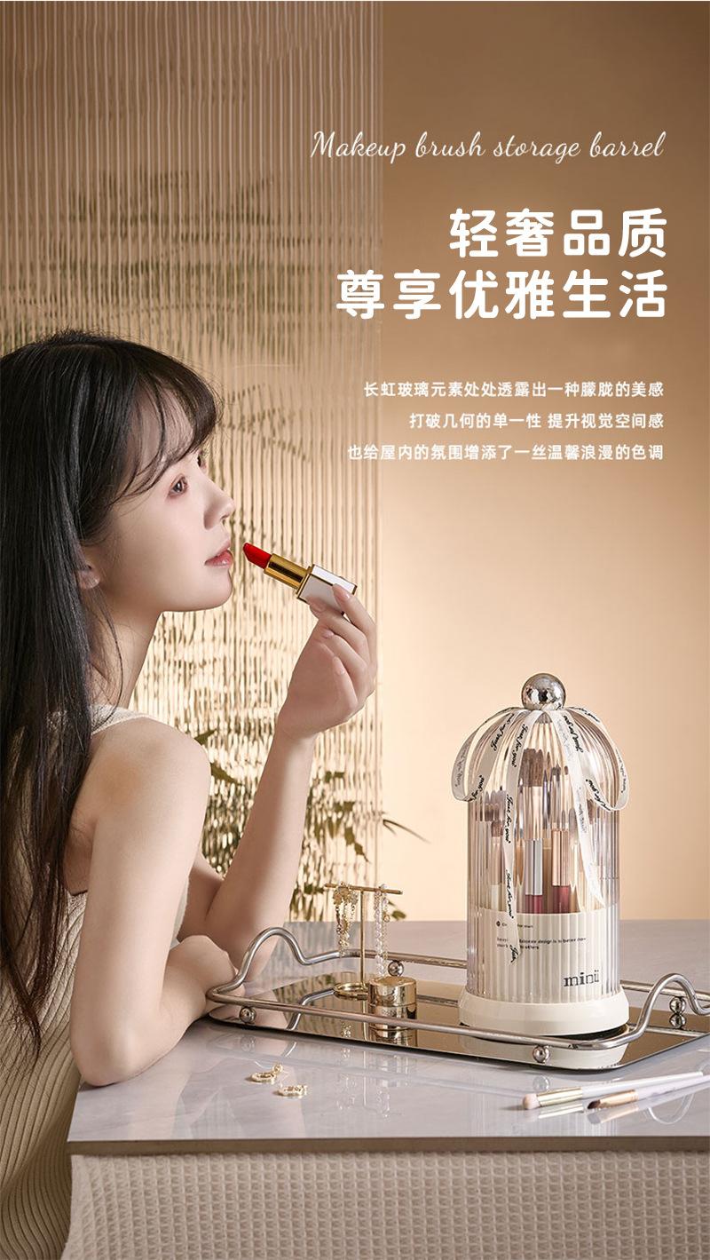 Cubo de almacenamiento para brochas de maquillaje, tubo de almacenamiento giratorio, tocador cosmético, estante para labiales y sombras de ojos, caja de almacenamiento de escritorio