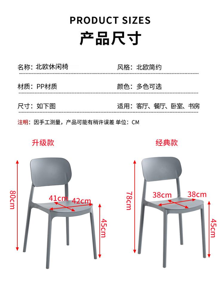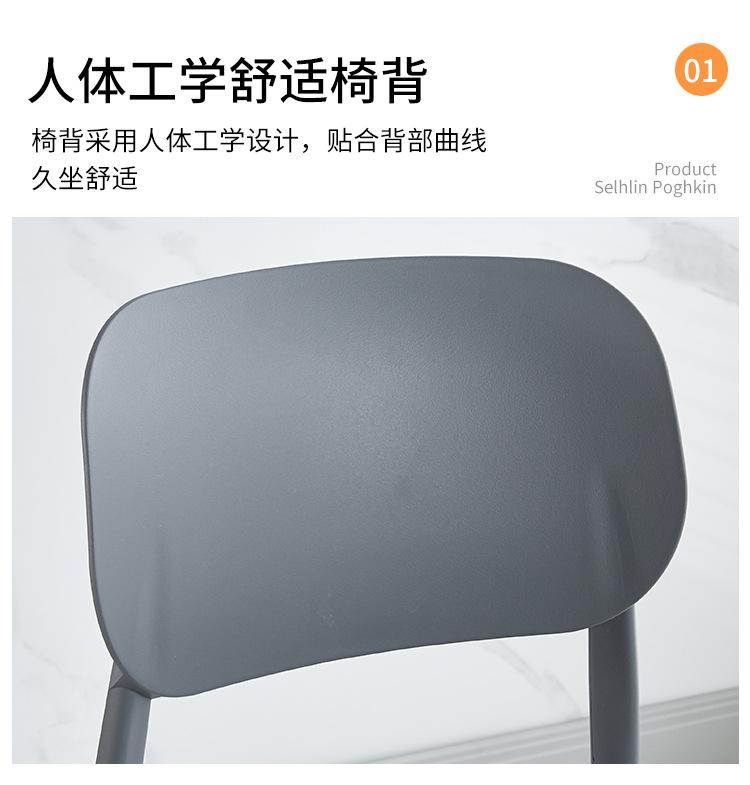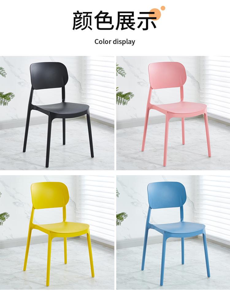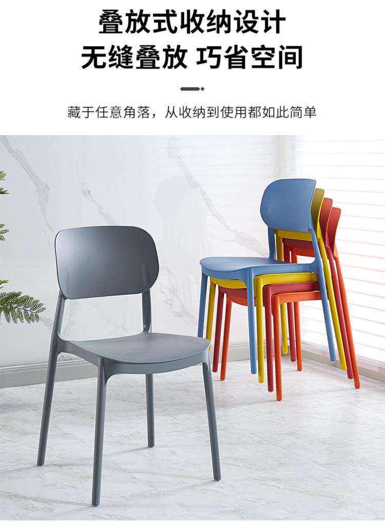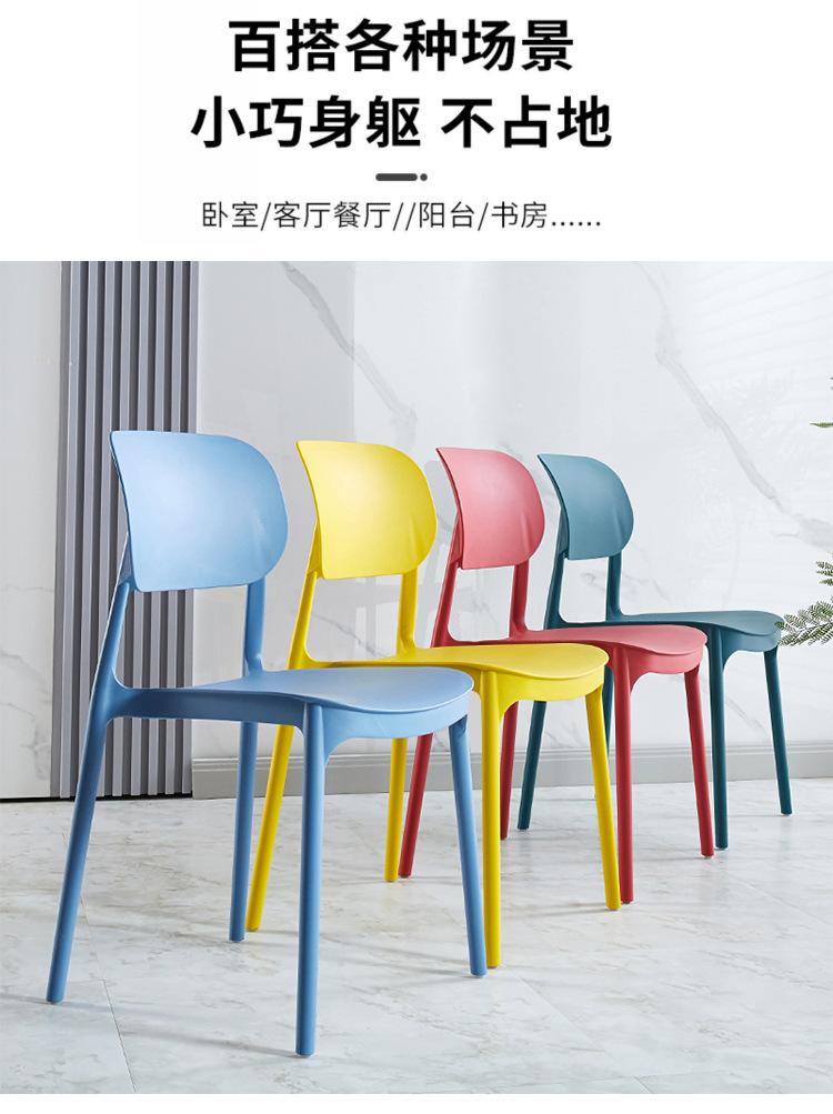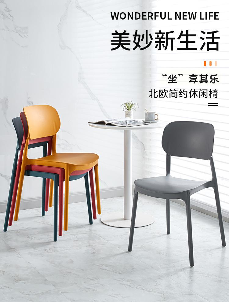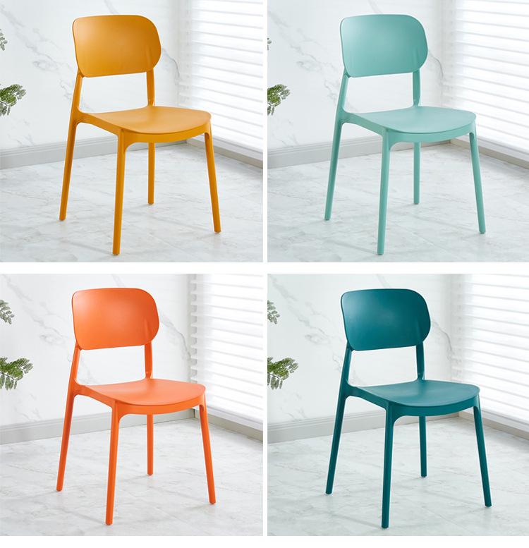 Silla de plástico con respaldo sencillo, taburete nórdico para comedor, apilable para el hogar, mesa de comedor de celebridades de Internet, silla cuadrada sencilla.