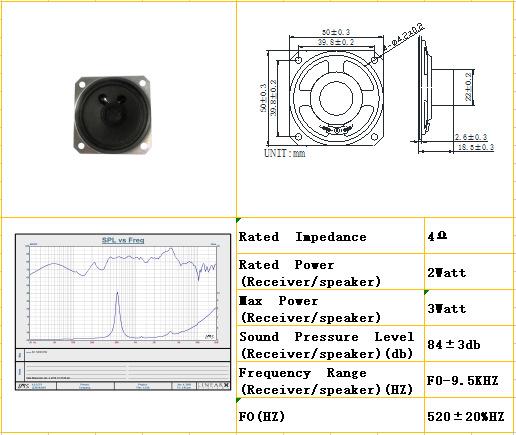 Altavoz Profesional Aec 50*504 Ohm 3W Cuadrado Magnético Interno Altavoz de Amplificación de Voz Omnidireccional