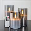 [Nombre del producto]: Juego de 3 velas electrónicas con cabeza de gota de agua de vidrio multicolor.