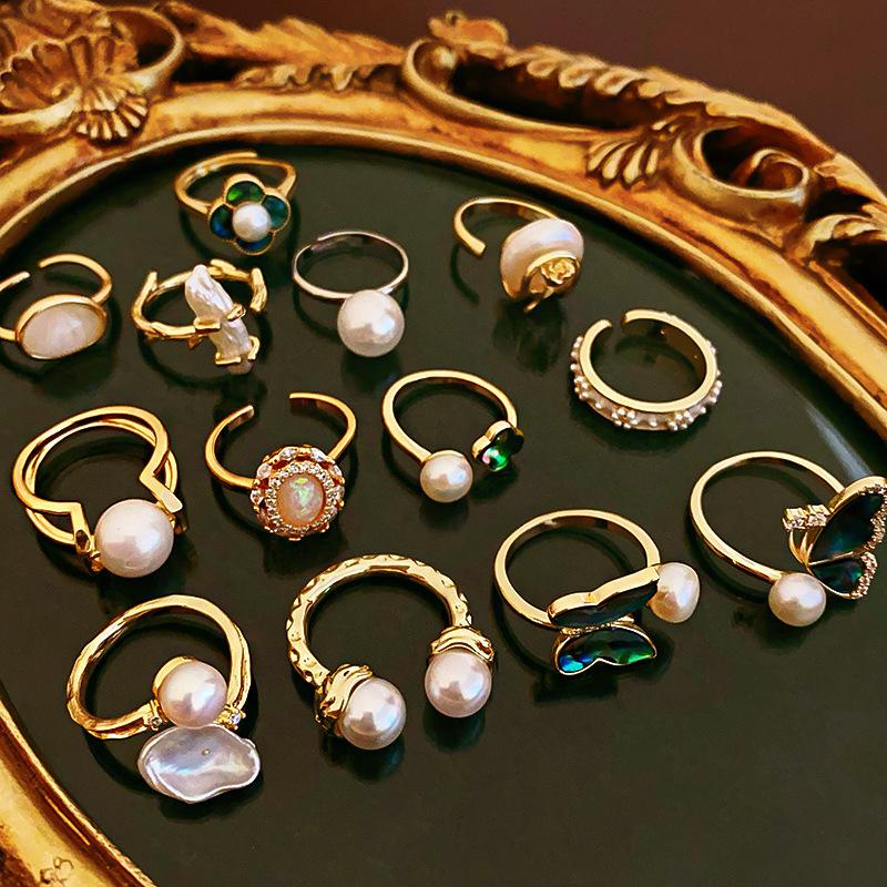 3 # Open ring-gold-brown, 9# Open ring-Gold, 10# Open ring-Gold-Pearl, 26# Open ring-Gold-round Tiger Eye Ston...