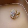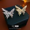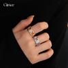 Anillo abierto de mariposa con circonita galvanizada en oro real, estilo retro de corte, anillo para dedo índice, pulsera ligera de lujo de alta calidad para mujer