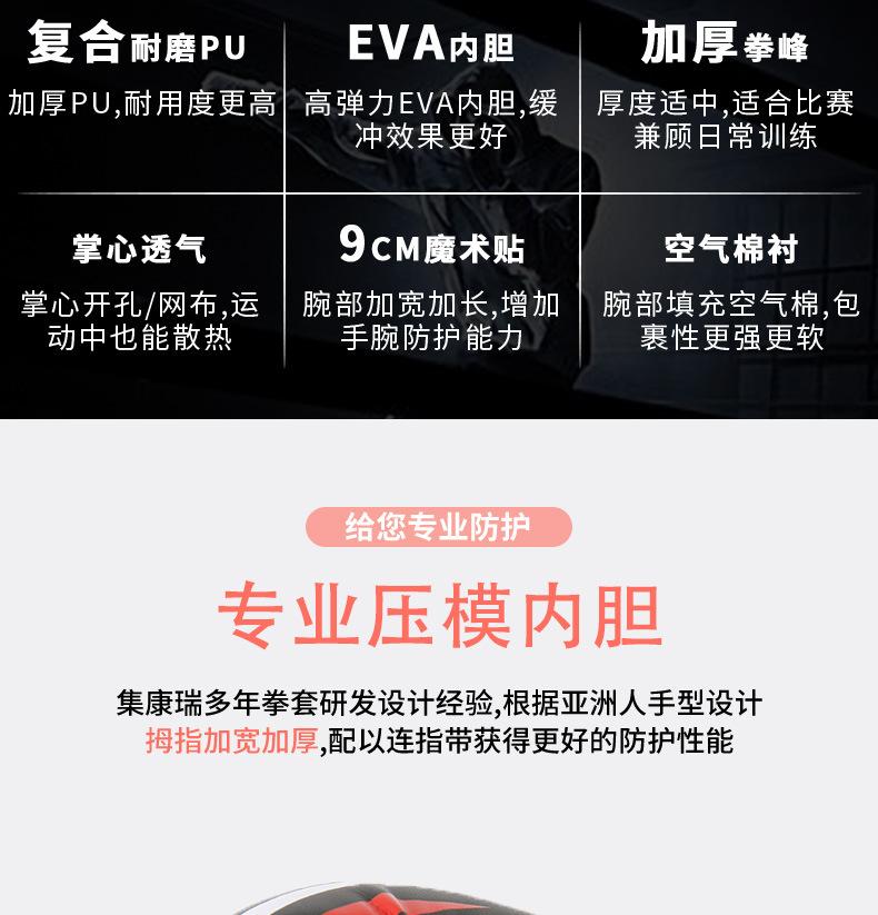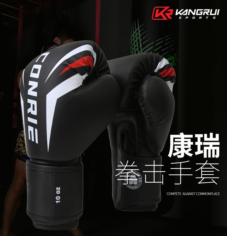 Guantes de boxeo Kangrui transfronterizos, guantes de boxeo Sanda, guantes de boxeo de combate, para entrenamiento y competición, con soporte para procesamiento OEM personalizado.
