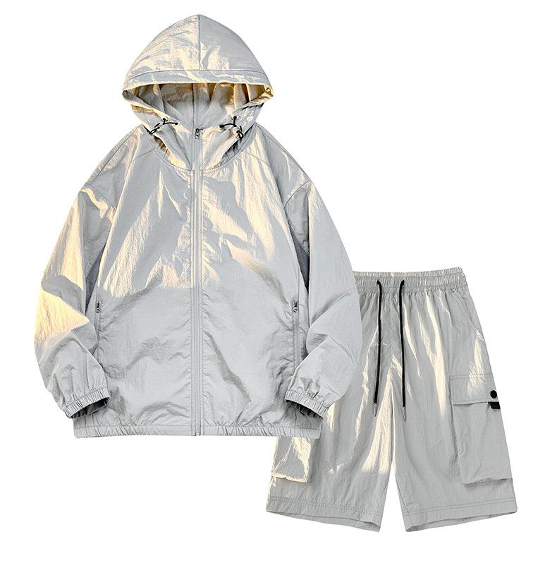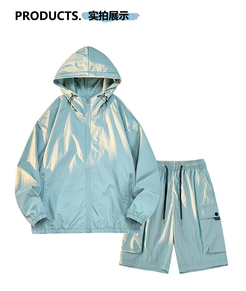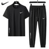 Ropa de protección solar, traje deportivo, marca de moda para hombre, seda de hielo, ropa de secado rápido, verano, delgado, atractivo, informal, conjunto de dos piezas