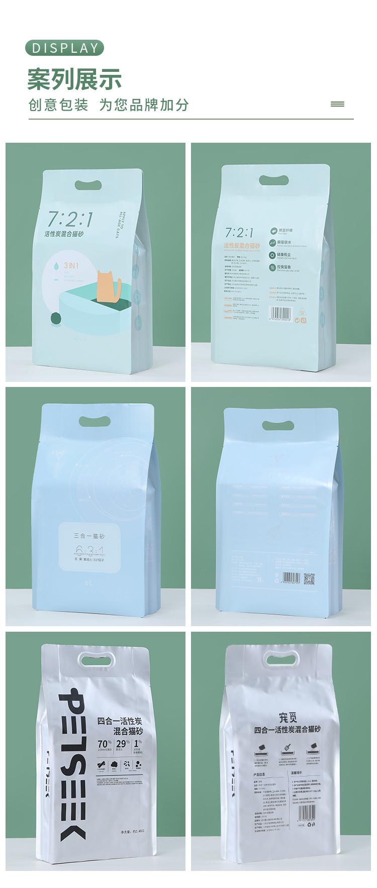 Bolsa de plástico con impresión personalizada, bolsa sellada, bolsa de alimentos espesada, bolsa mate para comida para mascotas, arena para gatos, bolsa con sellado de cuatro lados