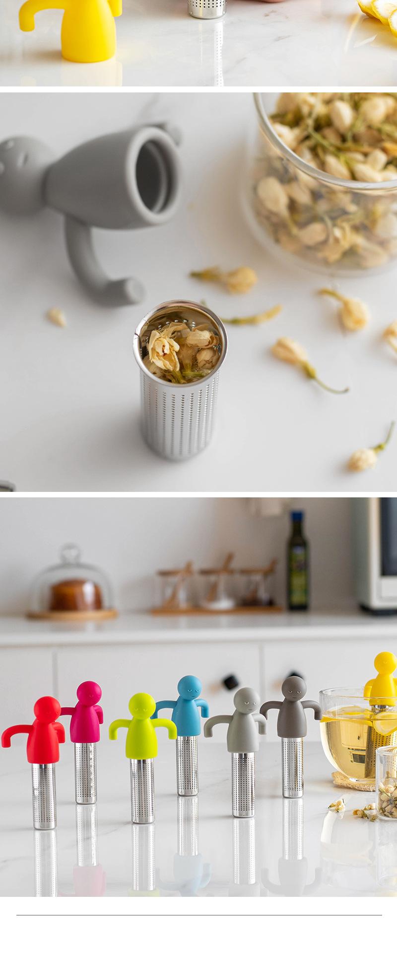 Colador de té de pared de silicona de acero inoxidable 304, juego de té con forma humana, colador de té de viaje