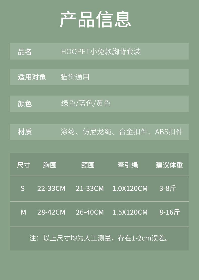 | * | Nombre del producto/Nombre comercial | Arnés de pecho universal HOOPET Pet para conejos, en forma de I (verde, azul y amarillo) (tamaño pequeño/grande) |