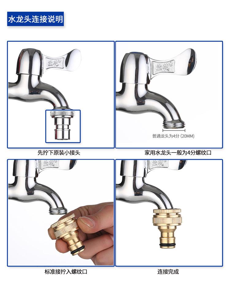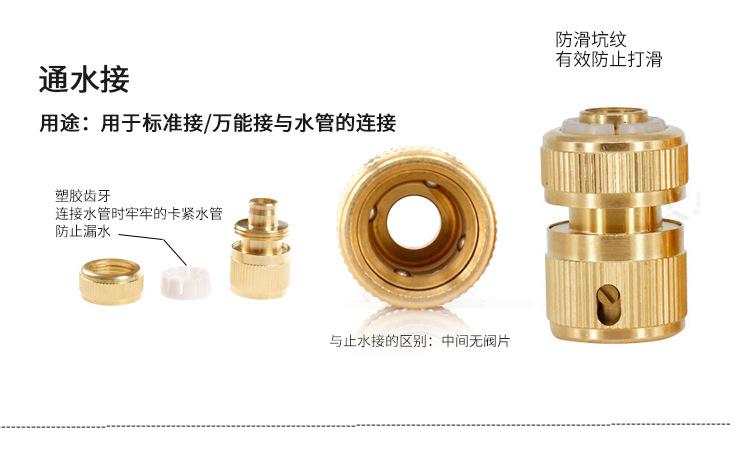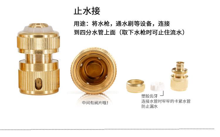 Conector de tubería de agua para pistola rociadora recta de lavado de autos, conector rápido para jardín, boquilla de cobre, conector de tubería de agua para pistola rociadora recta de 4 vías