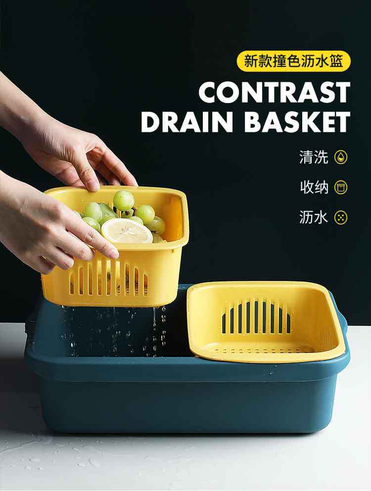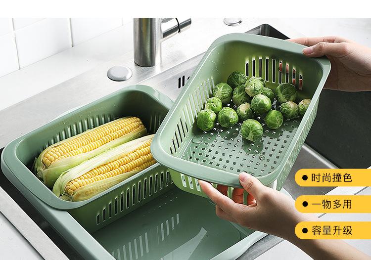 Cesta de Drenaje de Plástico Doble Capa Fregadero de Cocina Hogar Cesta para Lavar Verduras Cesta de Almacenamiento de Frutas y Verduras Cesta de Almacenamiento Multifunción