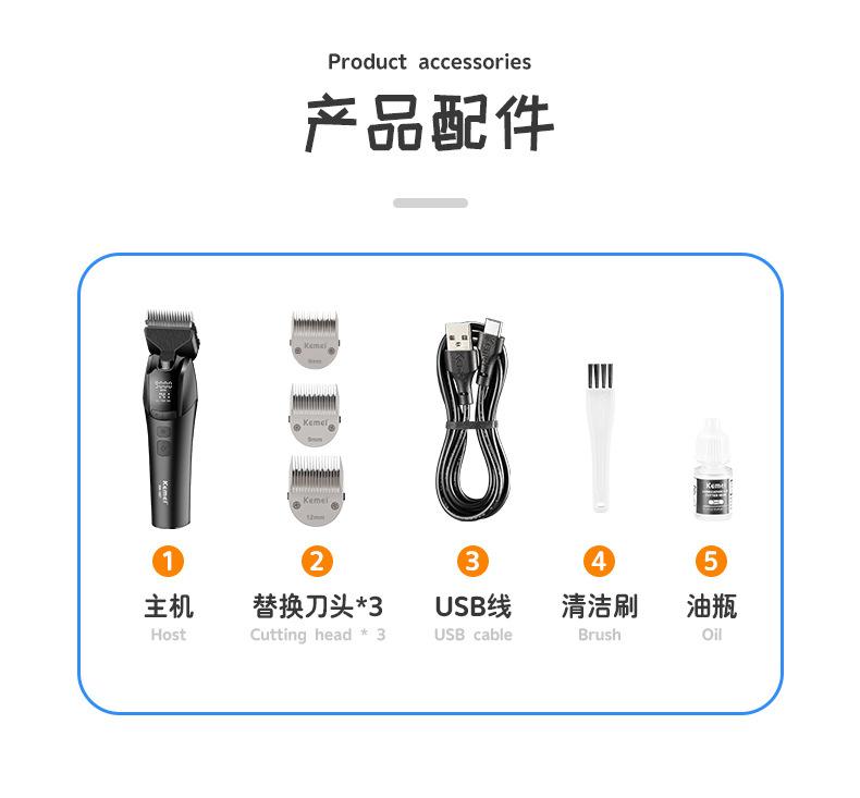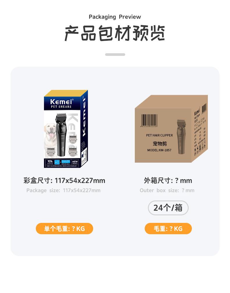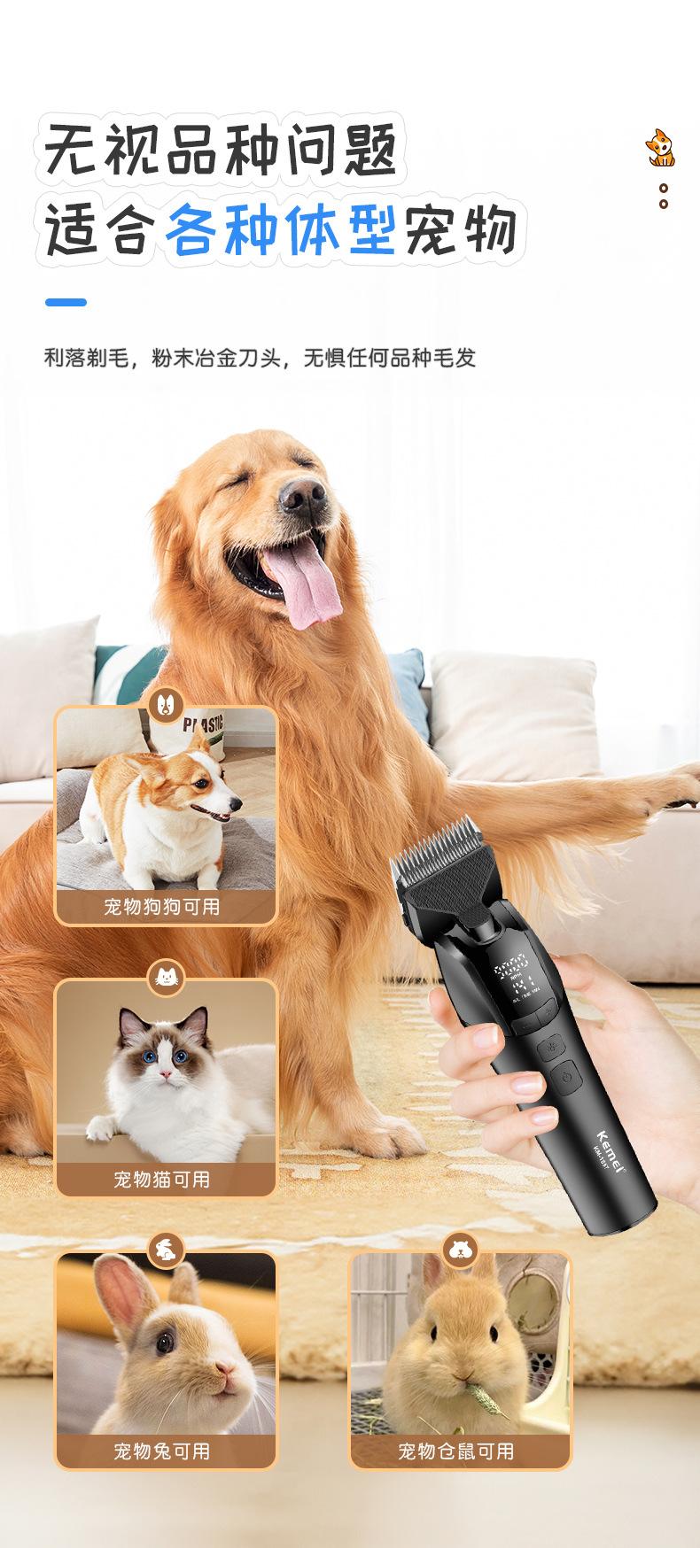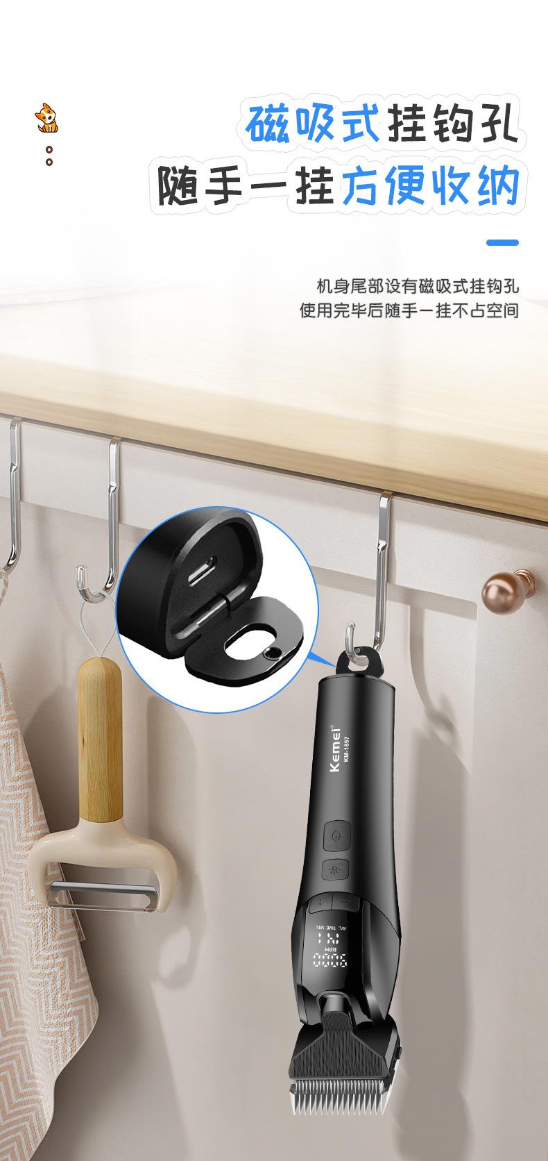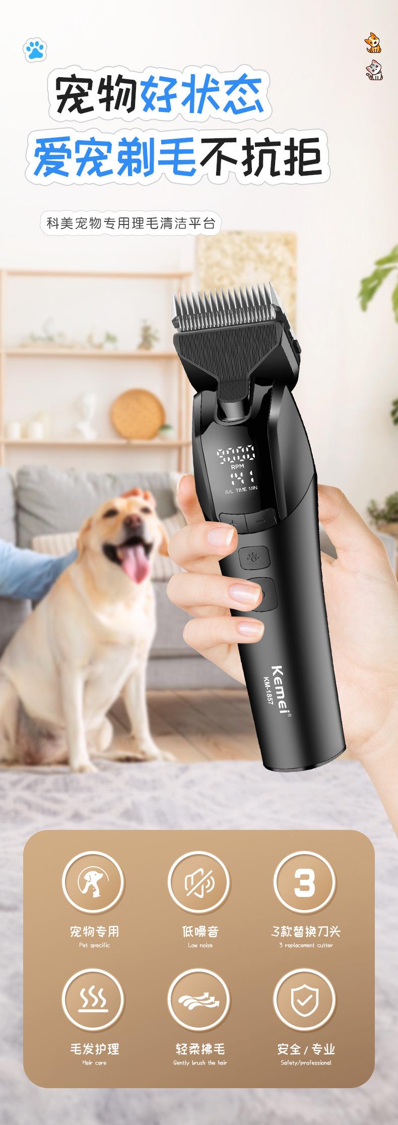 Kemei Cortapelo para Mascotas Recortadora Eléctrica Km-1857 Pantalla Digital Inteligente Afeitadora para Gatos y Perros Herramienta de Aseo Profesional