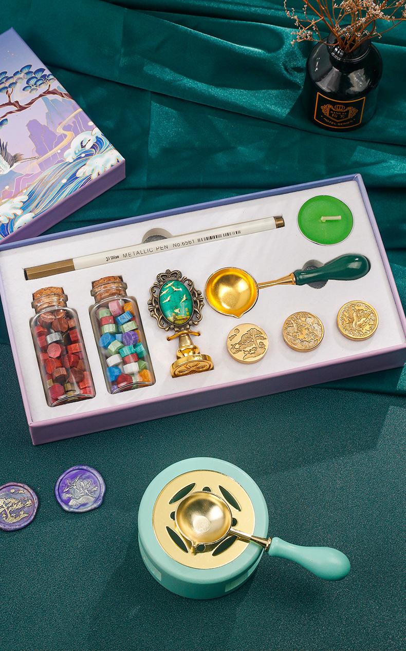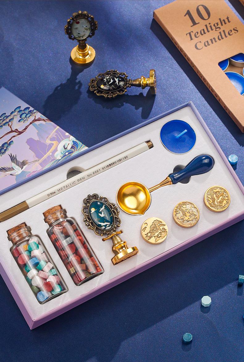[Juego de 9 piezas de pintura ignífuga antigua] Suministro directo de fábrica, sobre, vela, sello creativo retro de pintura ignífuga, caja de regalo al por mayor