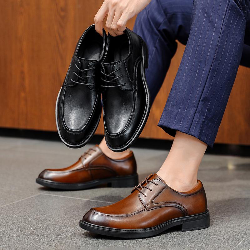 Zapatos Casuales de Primavera para Hombre Zapatos Formales de Cuero Zapatos de Cuero Genuino Transpirables Negros Hechos a Mano Zapatos de Cuero para Hombre para el Trabajo Negocios Ropa de Trabajo