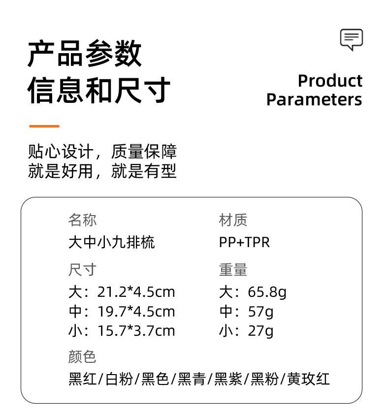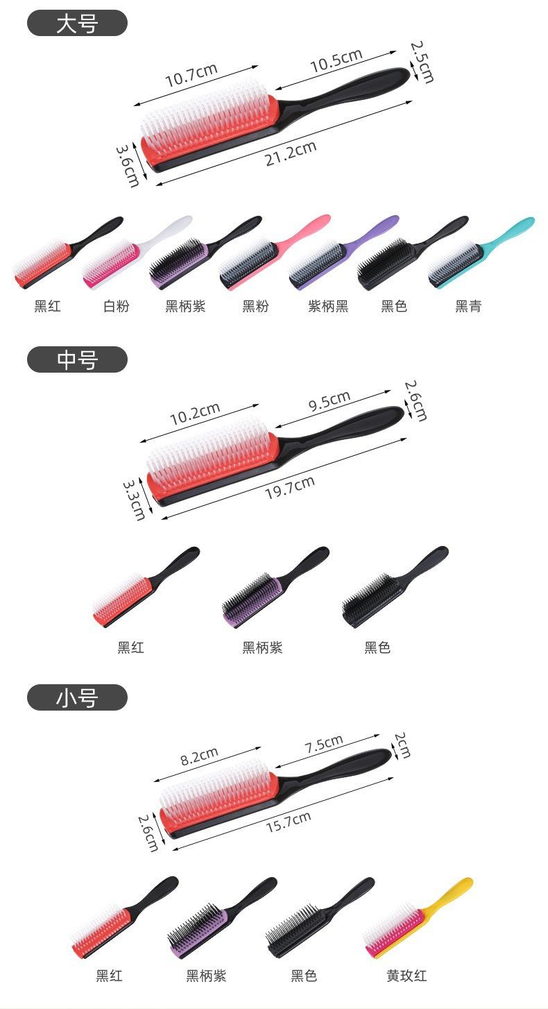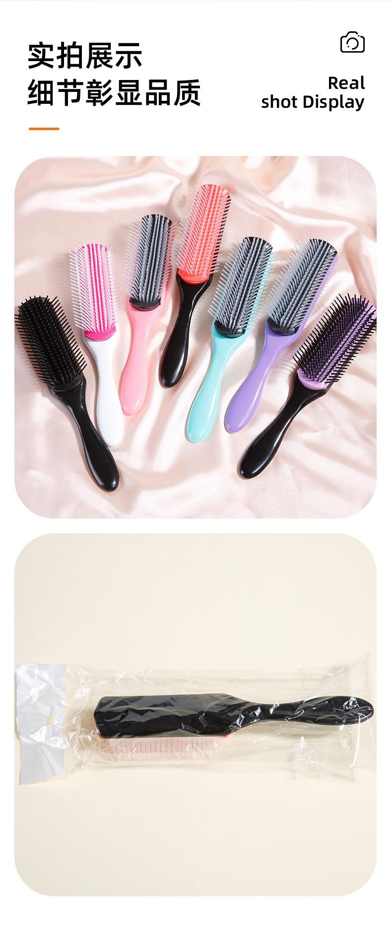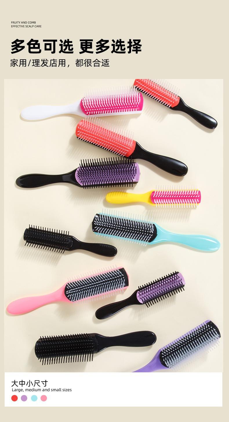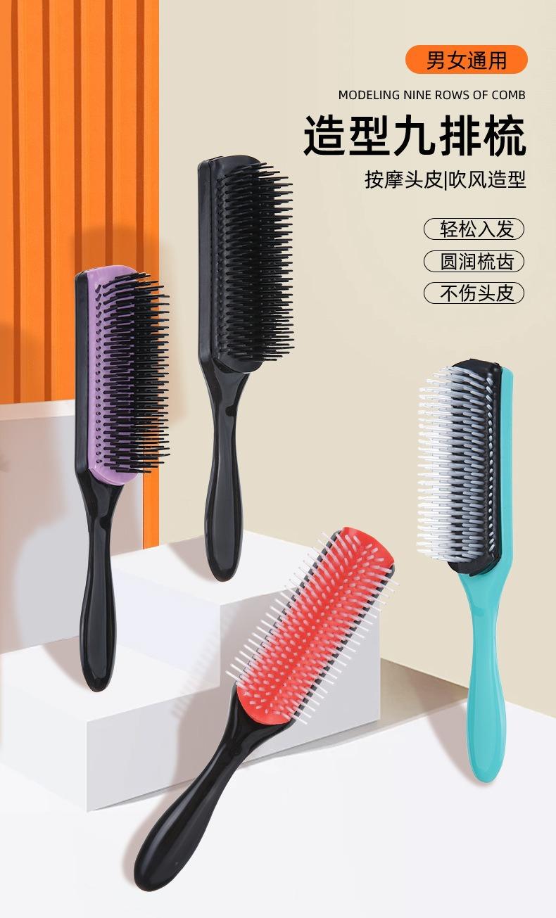 Peine para peinar el cabello rizado, peine de plástico con nervaduras, peine de masaje antiestático, peine para peinar el cabello con nueve filas de peine.