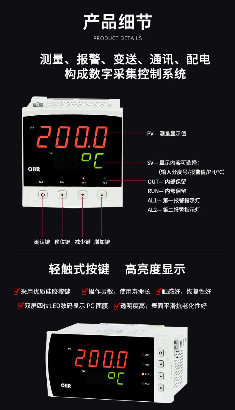 Medidor de pantalla digital Hongrun, voltaje de corriente, temperatura, conmutación completa, entrada de temperatura, alarma, control de retorno, medidor de pantalla digital inteligente