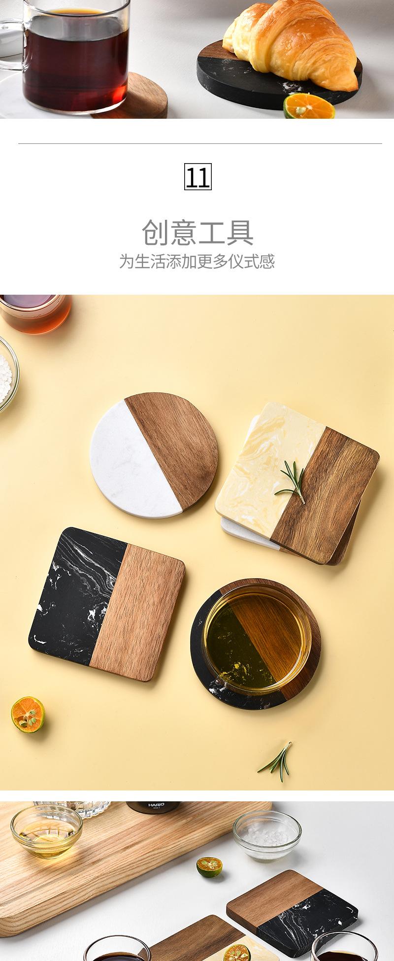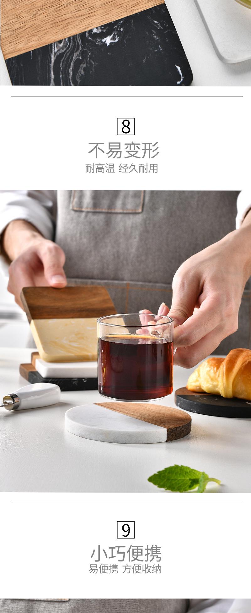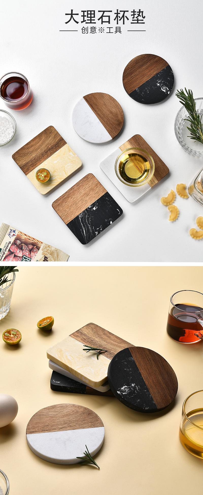 Posavasos de madera maciza con empalme de mármol estilo ins, tapete aislante térmico, barra, taza, posavasos de aire frío alto, herramientas