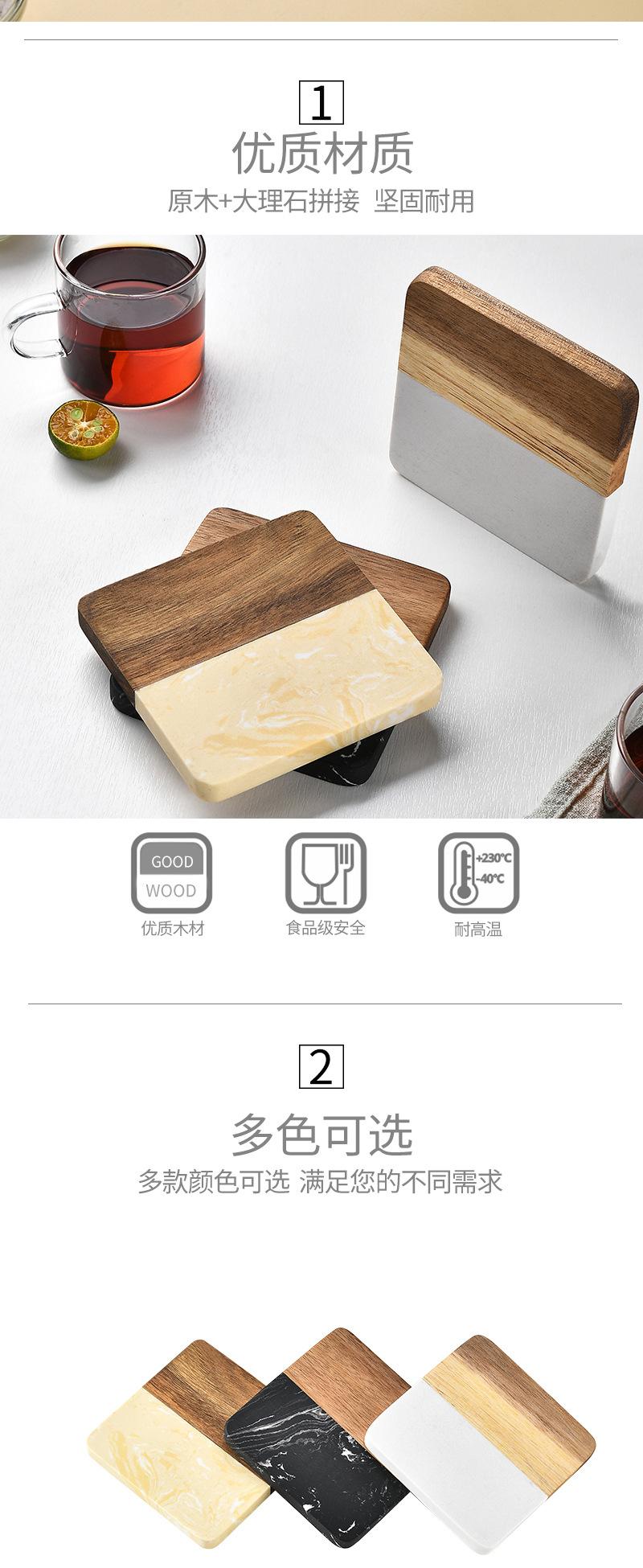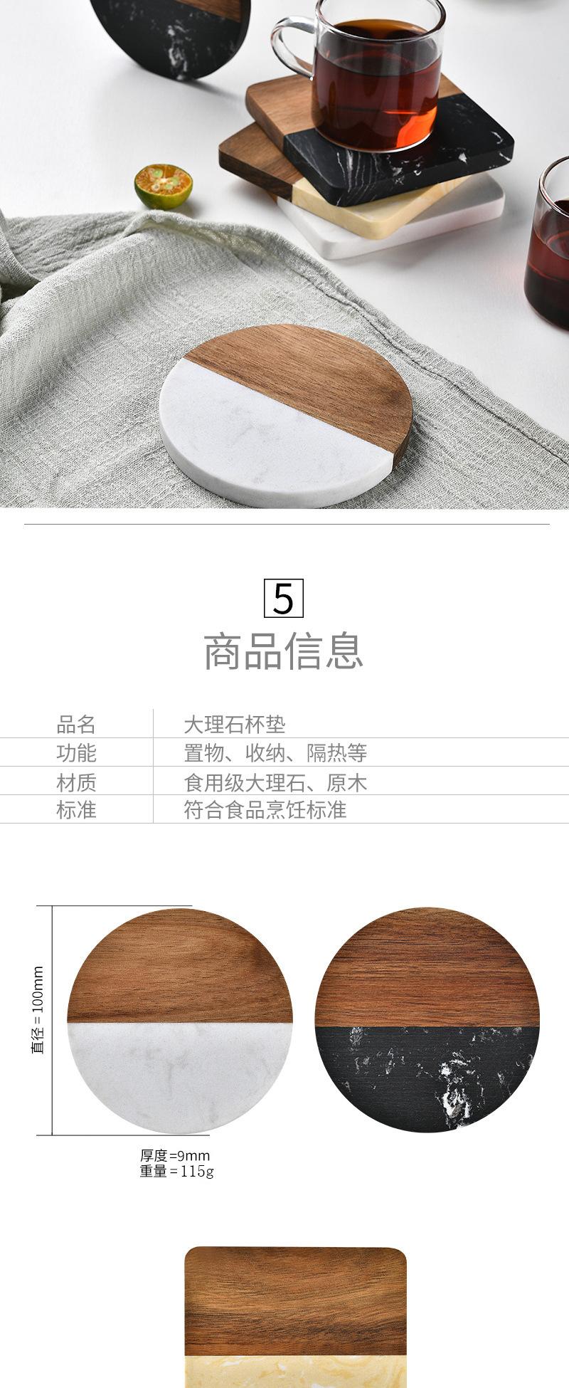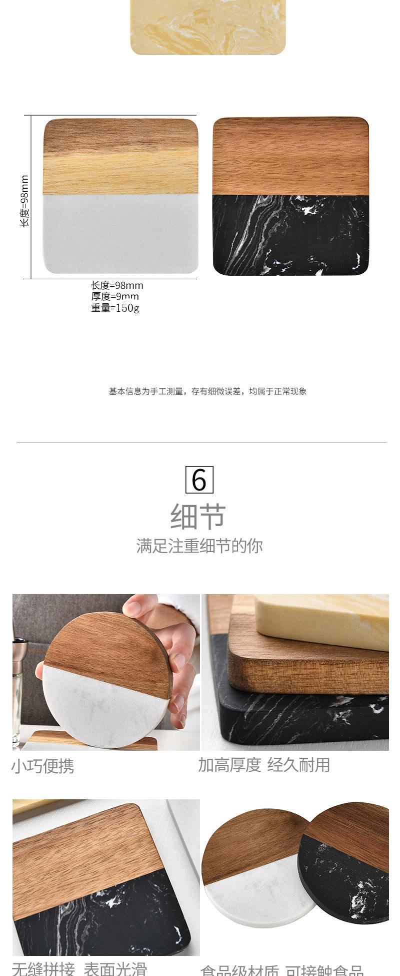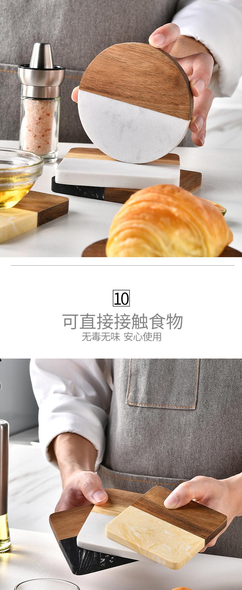 Posavasos de madera maciza con empalme de mármol estilo ins, tapete aislante térmico, barra, taza, posavasos de aire frío alto, herramientas