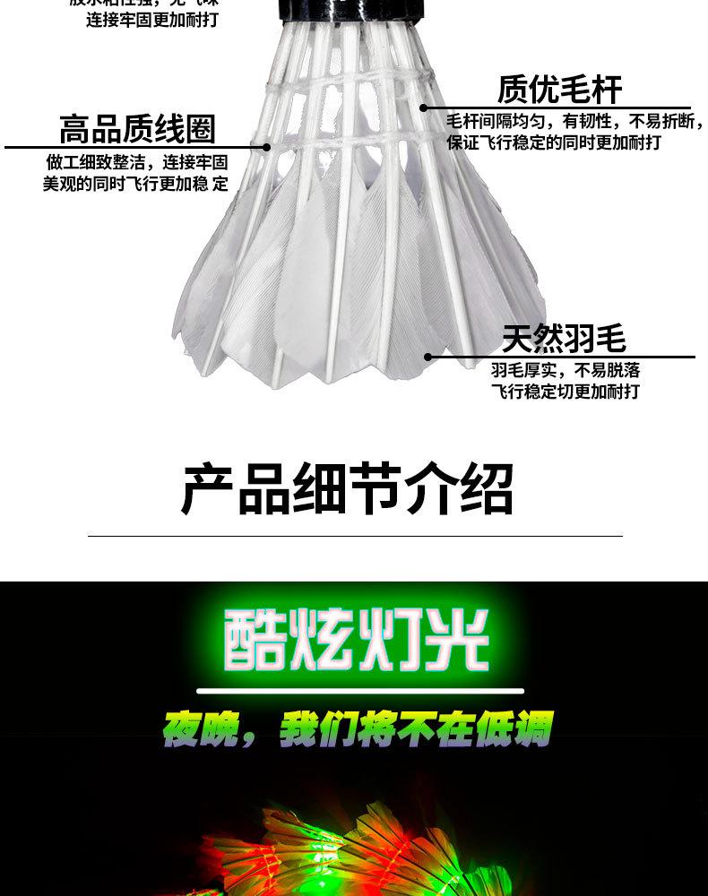 Bádminton luminoso LED de noche resistente, pluma de pato, pluma de ganso, noche, exterior, resistente, bádminton transfronterizo, venta al por mayor