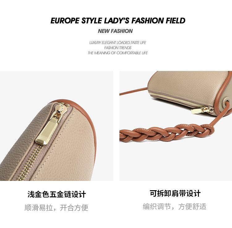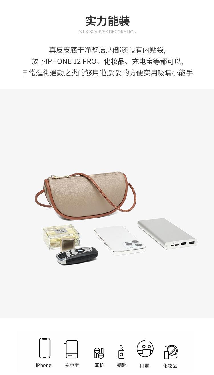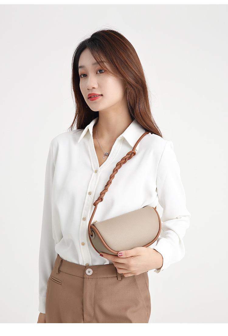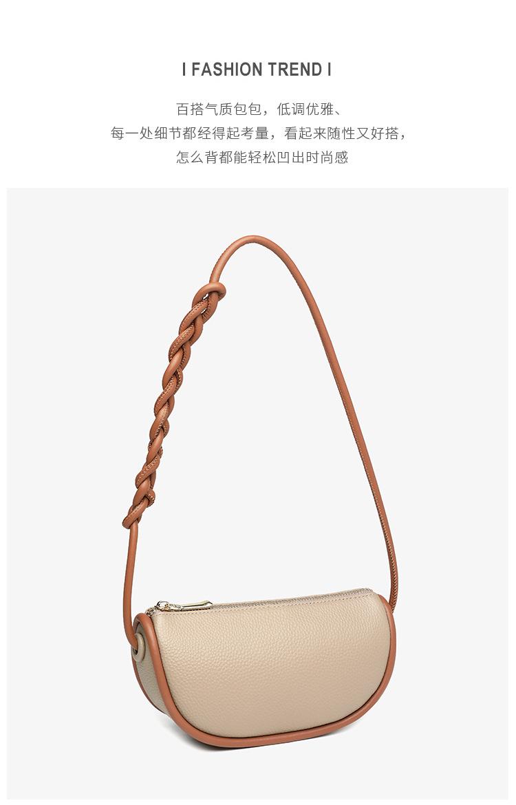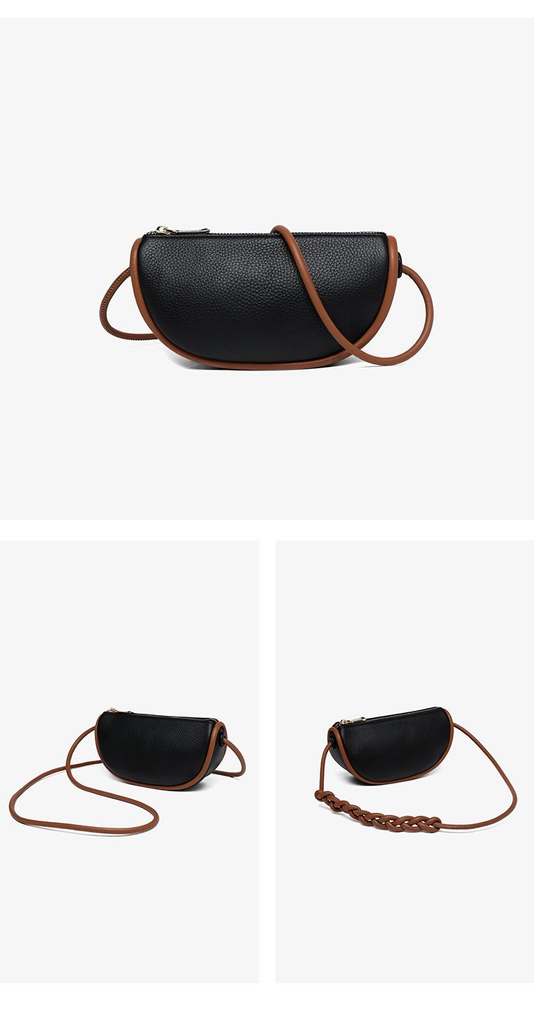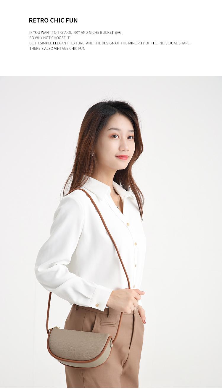 Bolso de Mujer de Cuero Genuino, Bolso Dumpling Simple y Versátil, Nuevo Bolso Niche Media Luna, Bolso Bandolera de Un Solo Hombro, Bolso de Cuero de Vaca de Primera Capa
