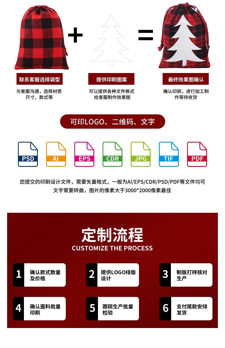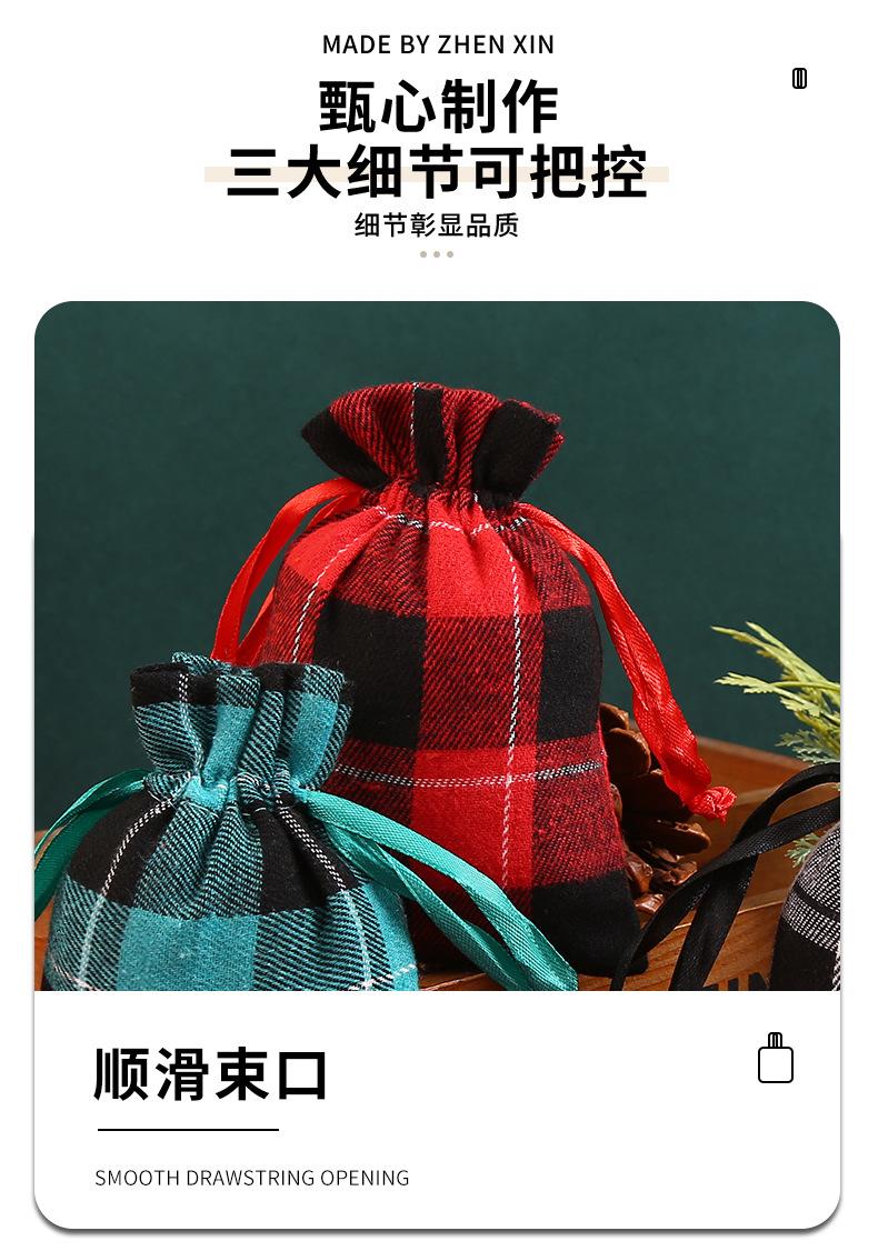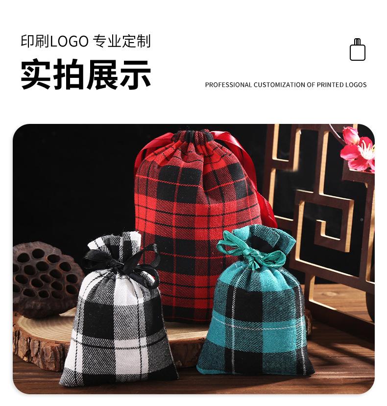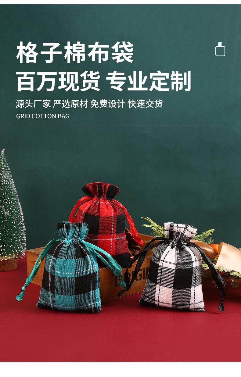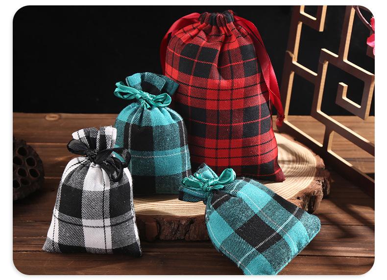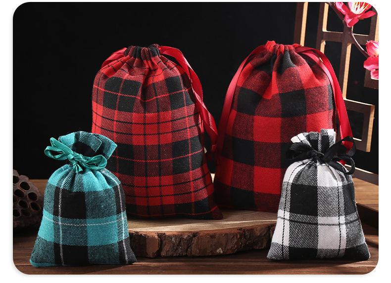 Bolsa de Algodón a Cuadros Navideños con Cordón de Algodón Estampado Bolsa de Regalo de Navidad Amazon Más Vendida Bolsa de Navidad
