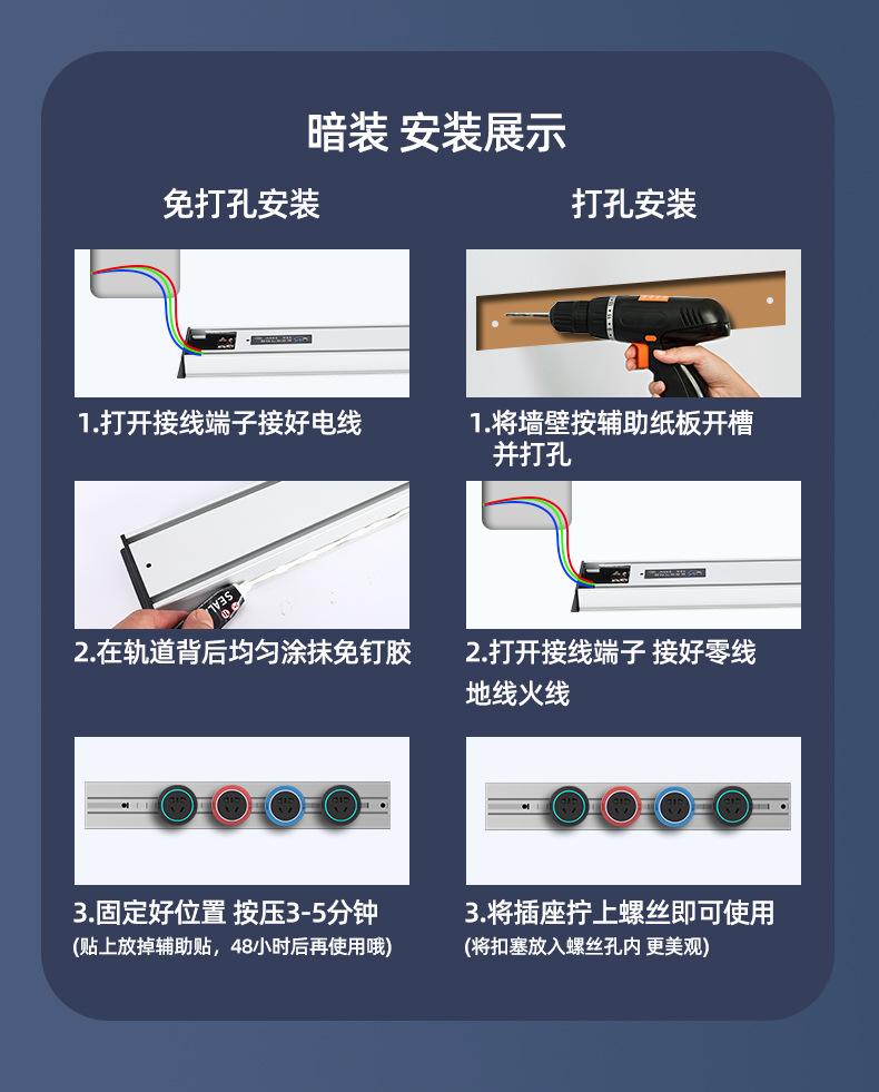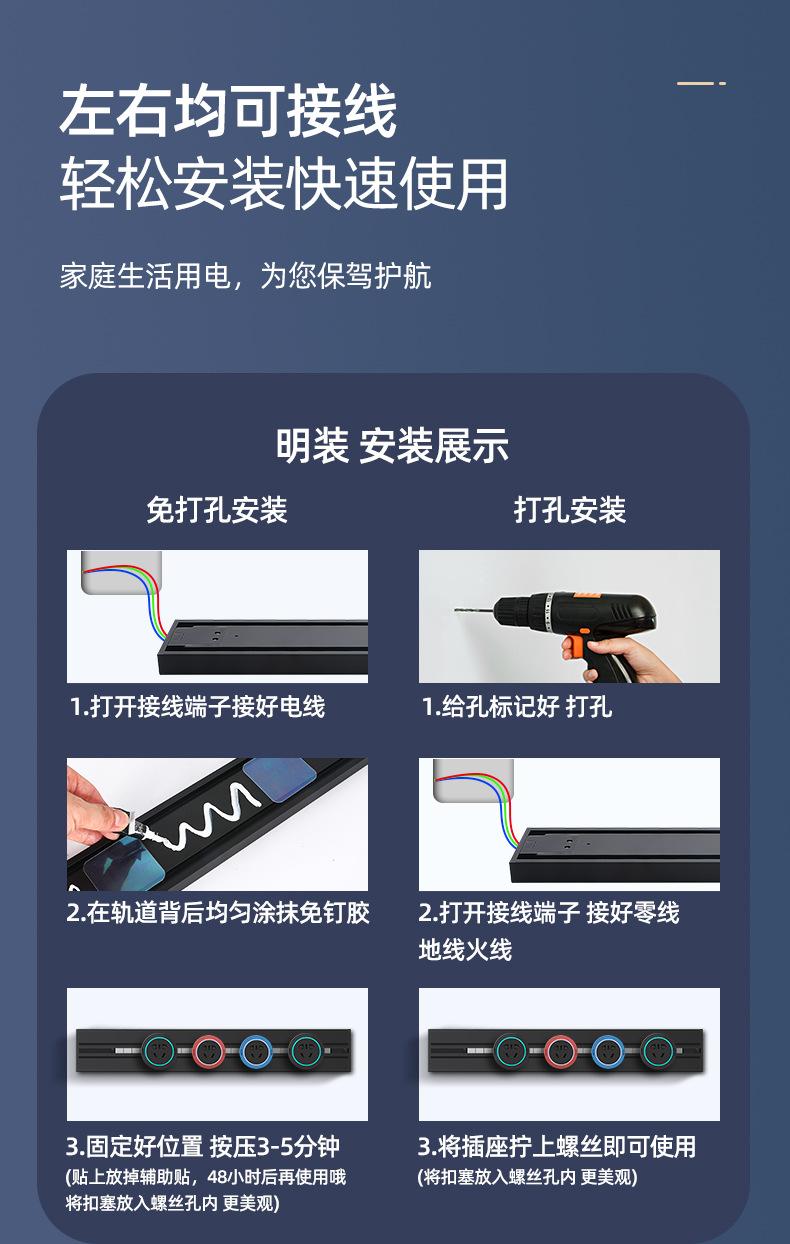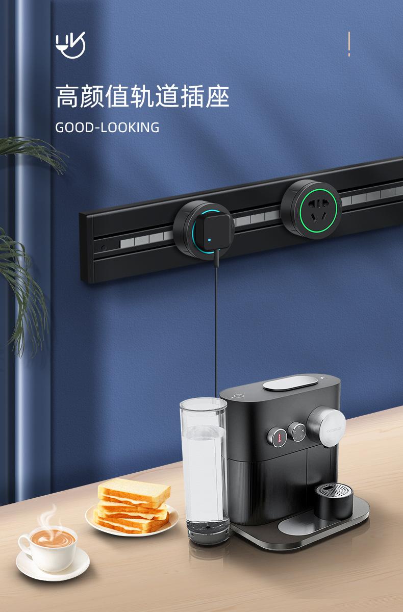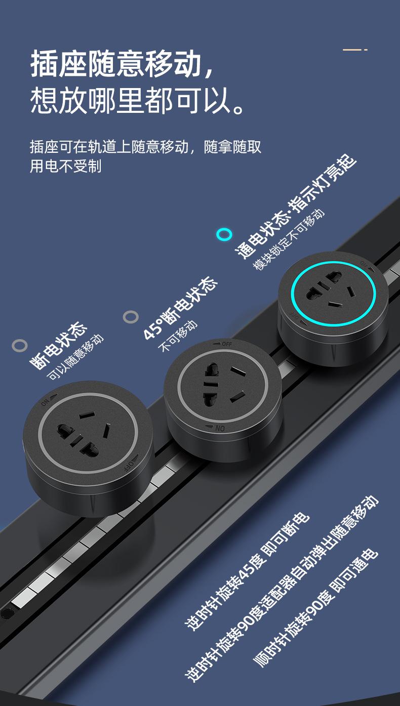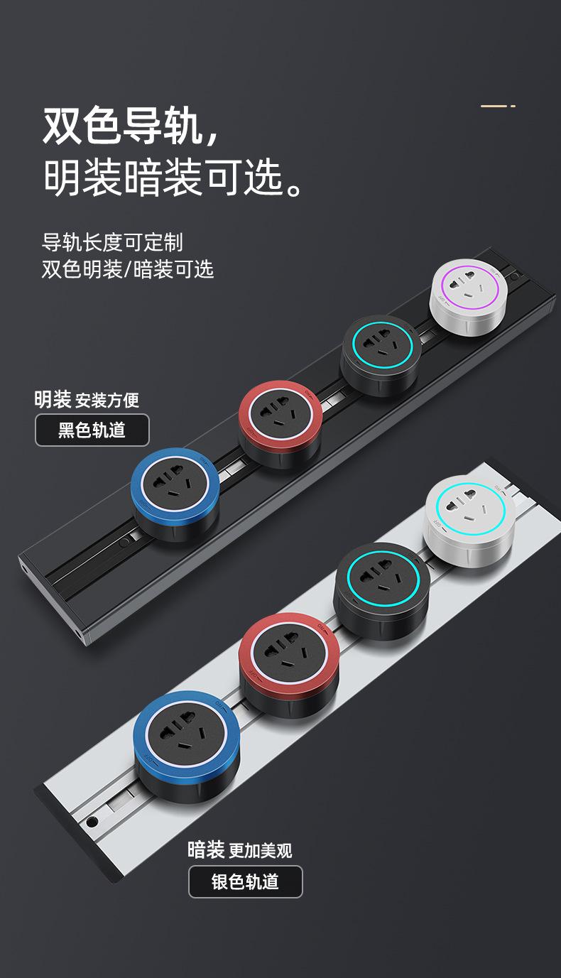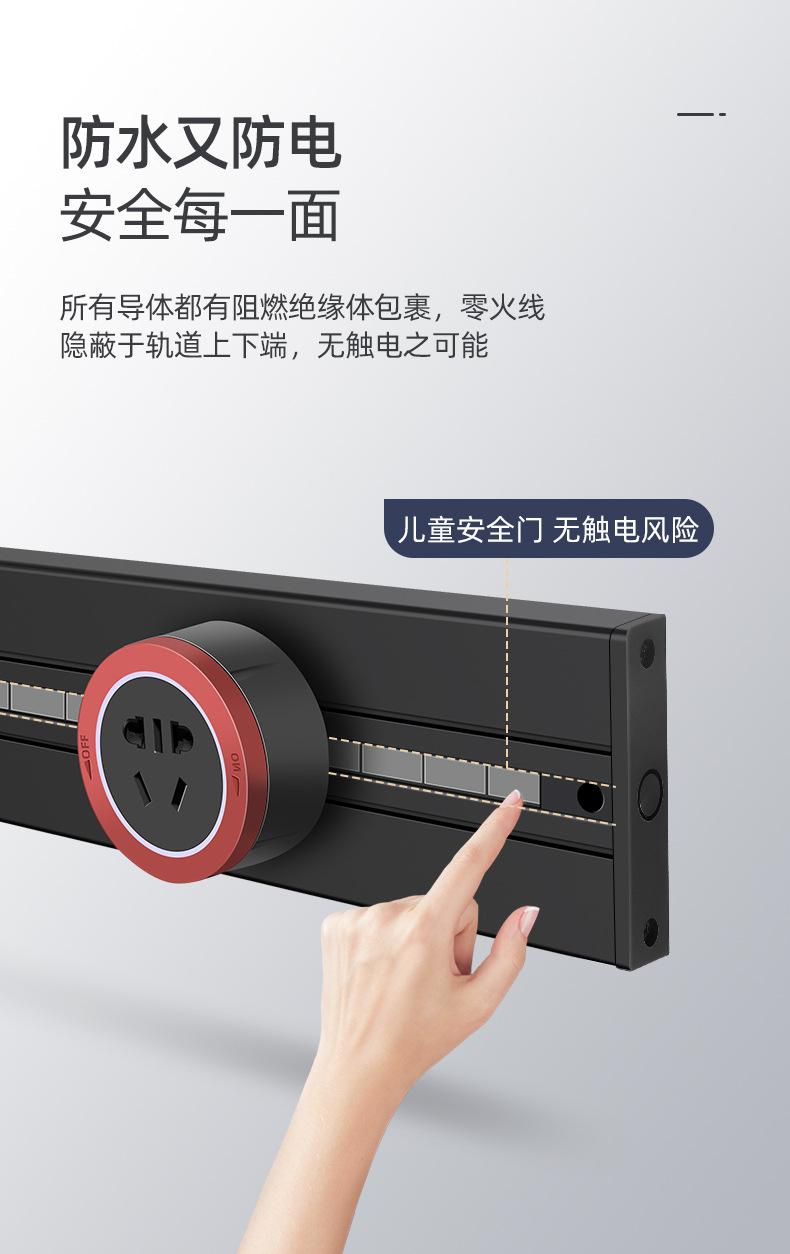 Toma de corriente de riel móvil montada en la pared con interruptor deslizante y montaje abierto para evitar descargas eléctricas