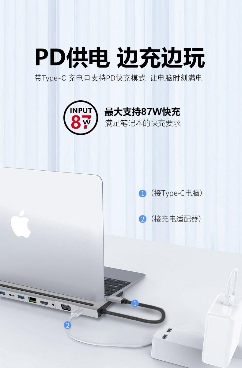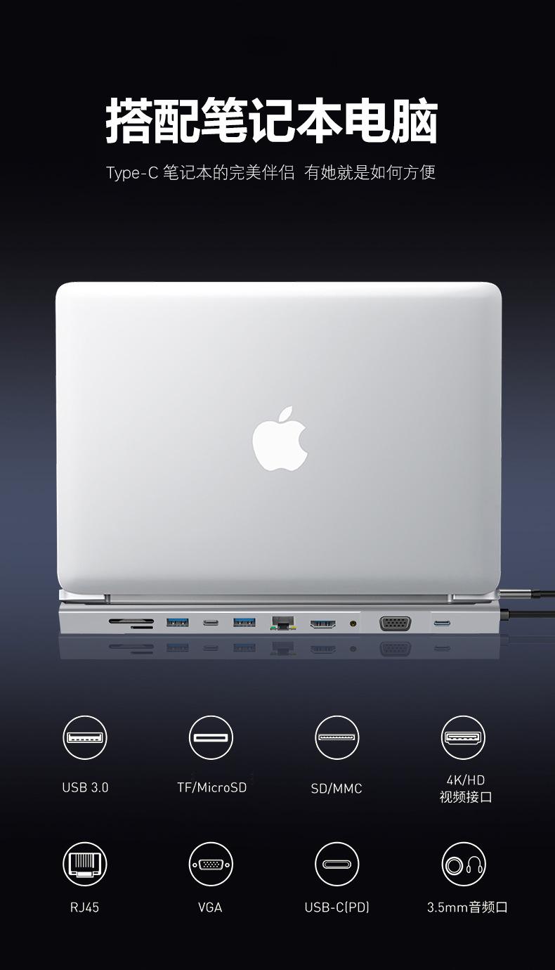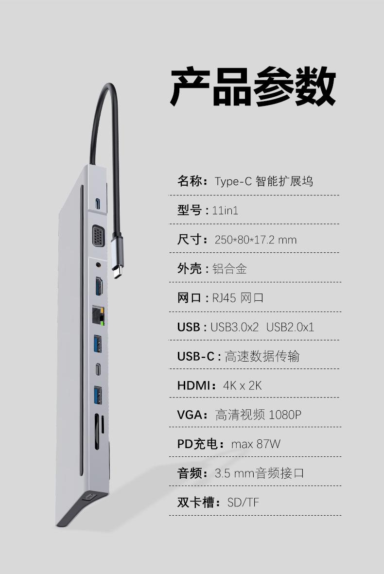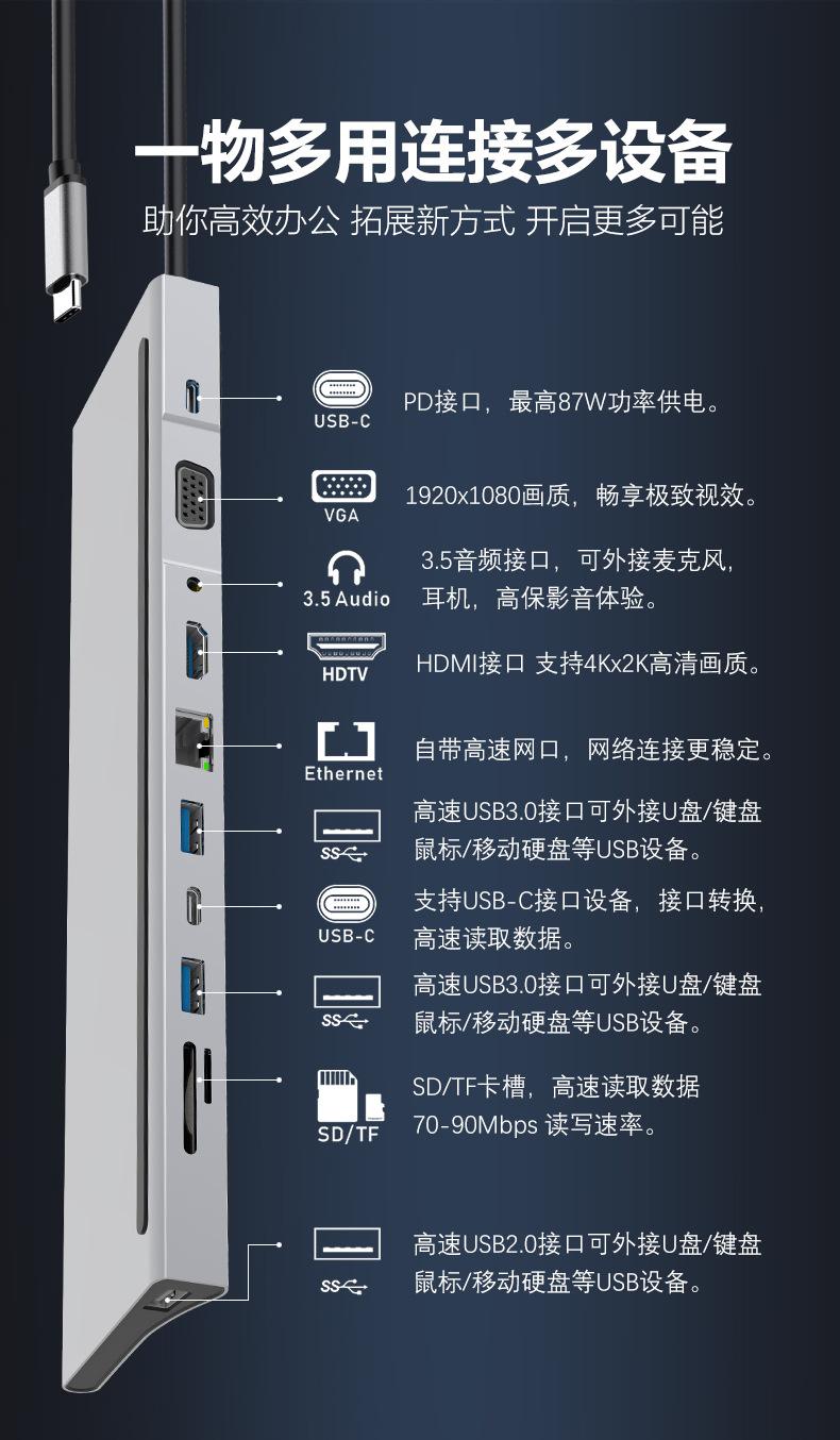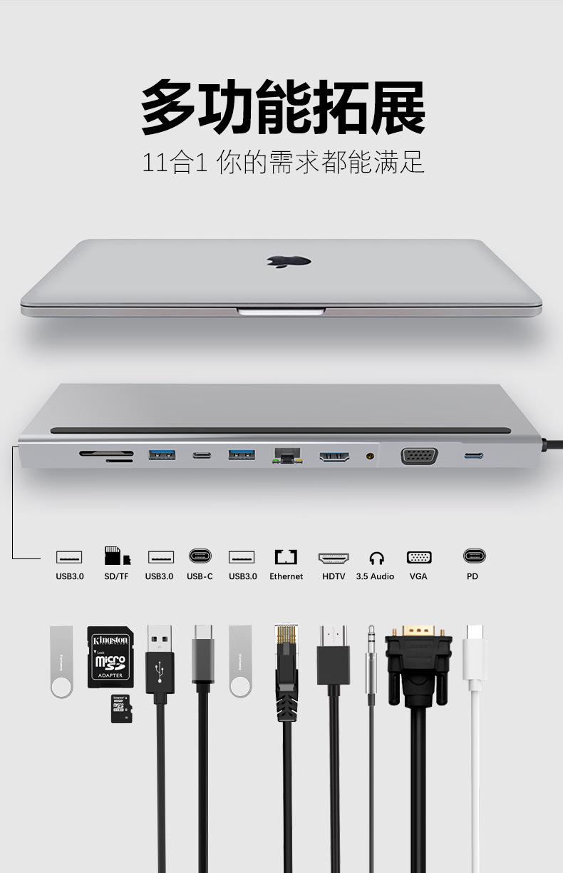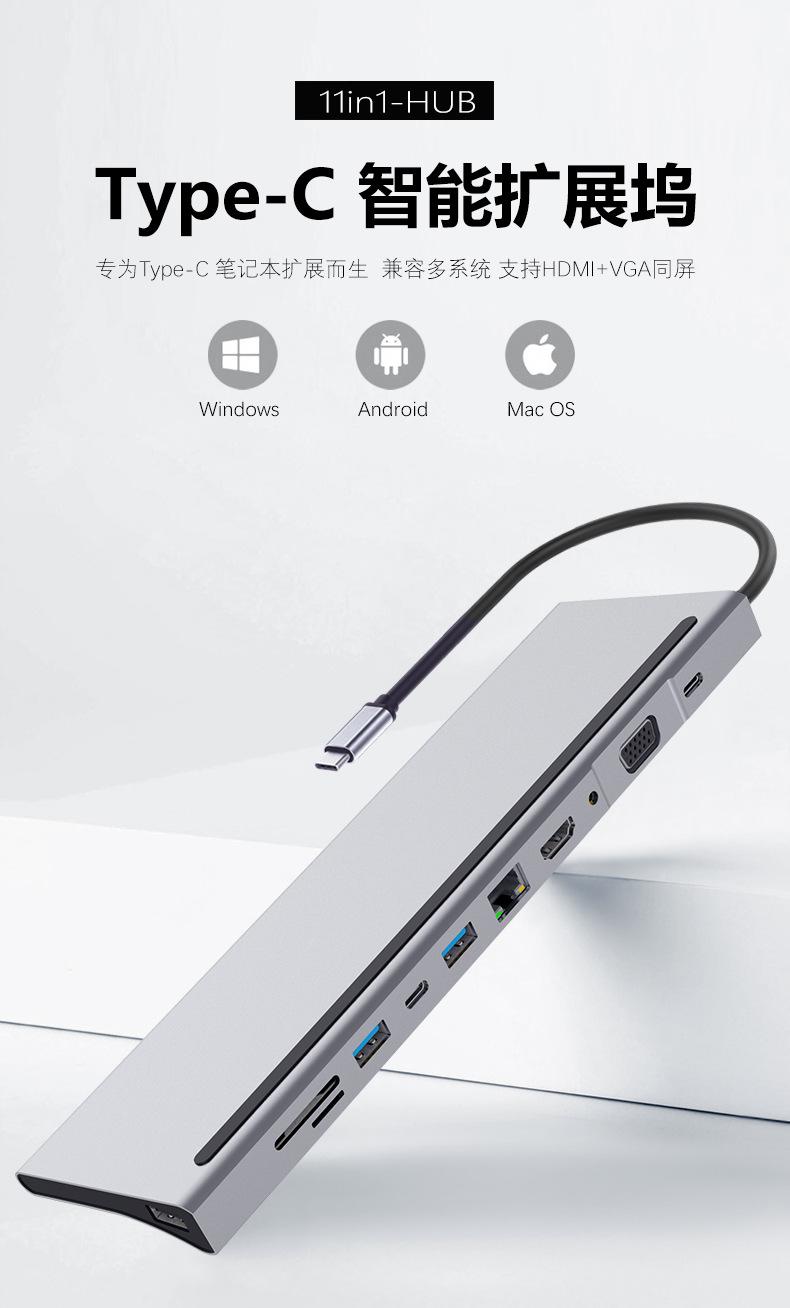 11in1 [hdmi+vga+usb+sd/tf+pd+3.5 headphones+100m]