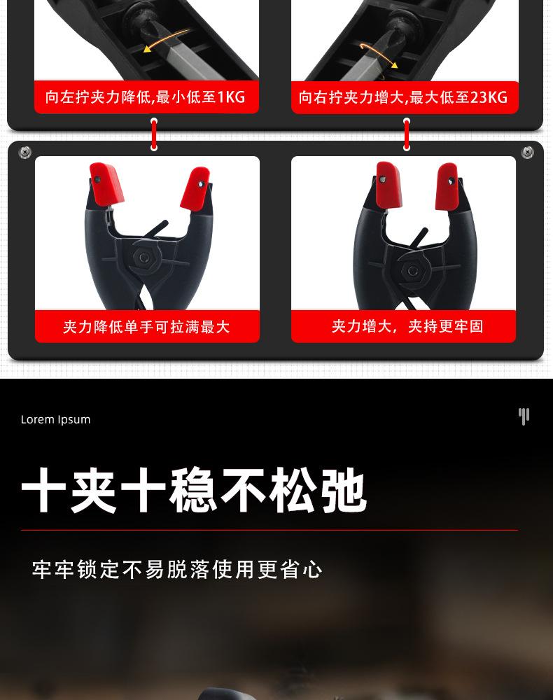 Fuerza ajustable un clip clip de resorte fuerte modelo clip clip de plástico abrazadera para carpintería tipo de clip móvil