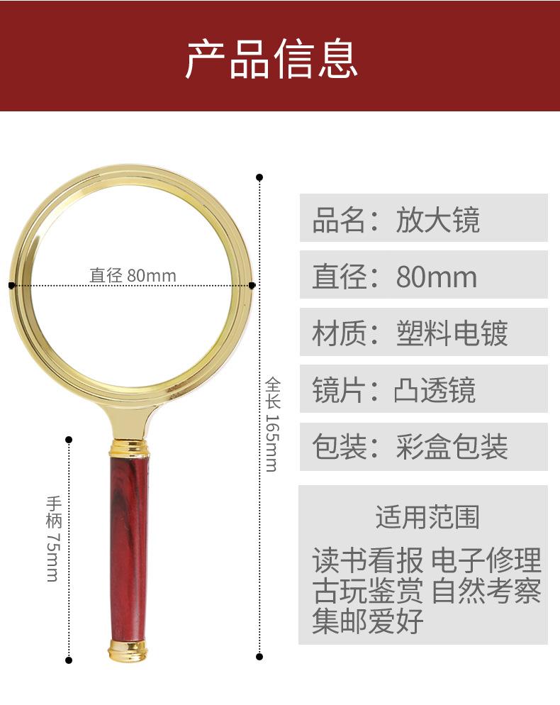 Lupa de 8 cm para Niños y Ancianos Lectura Lupa Portátil Ciencia Óptica Escuela Primaria Instrumento de Enseñanza de Divulgación Científica