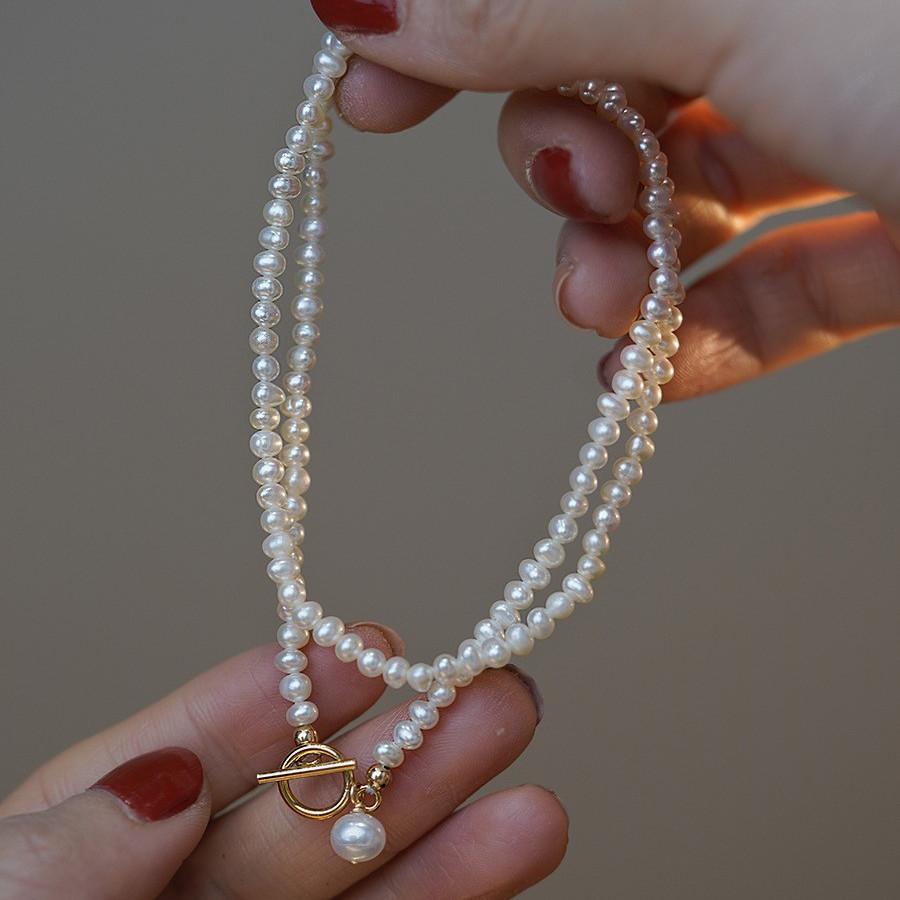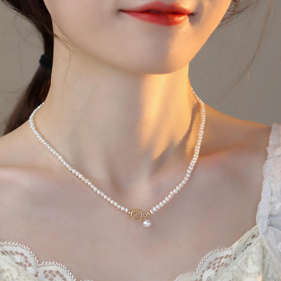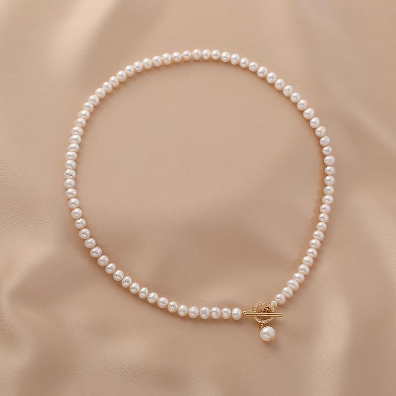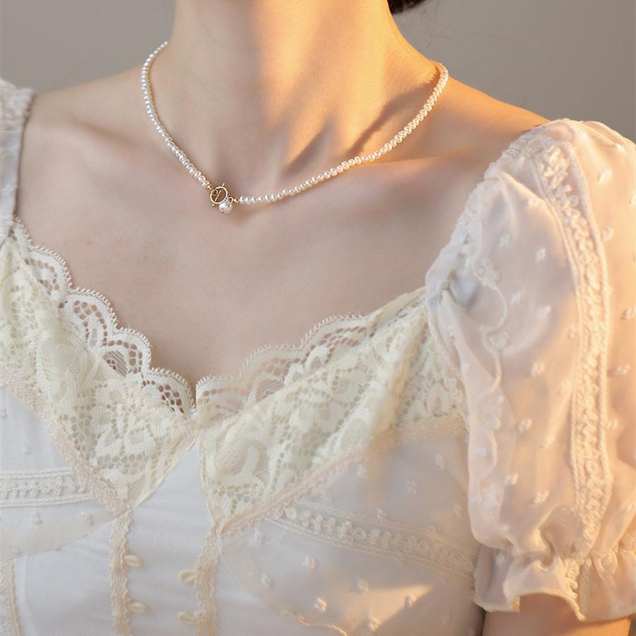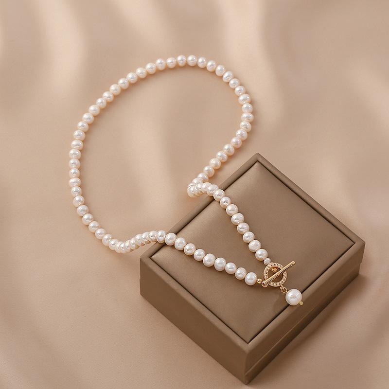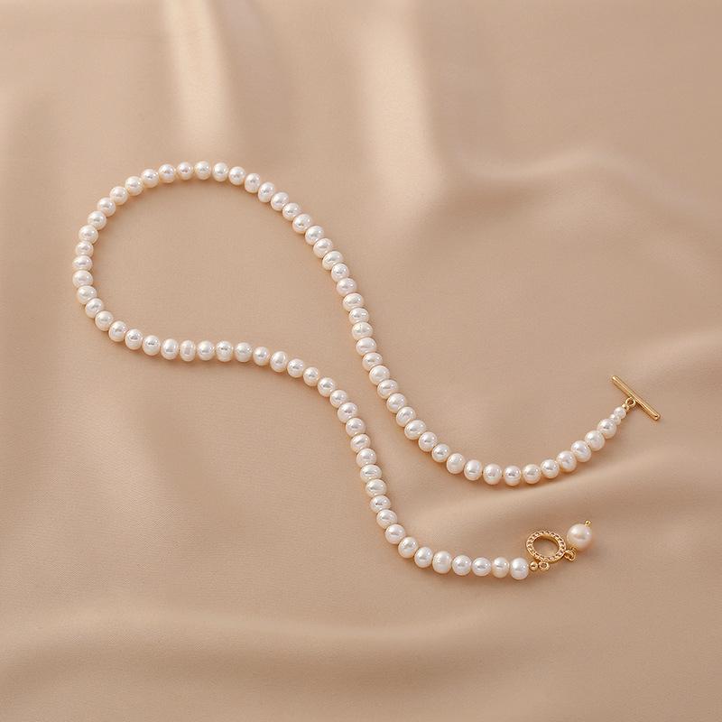 Collar de perlas de agua dulce para mujer, estilo francés, retro, sencillo, versátil, elegante, a la moda, personalizado, cadena de clavícula.